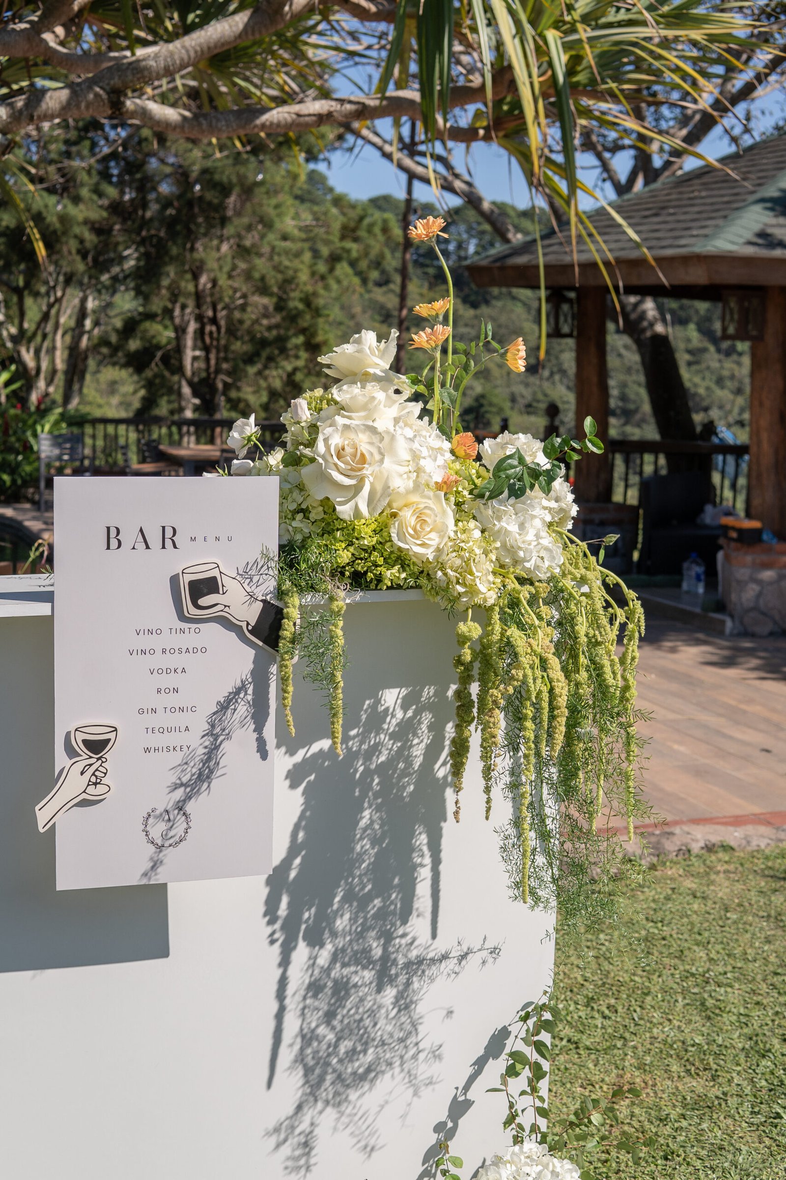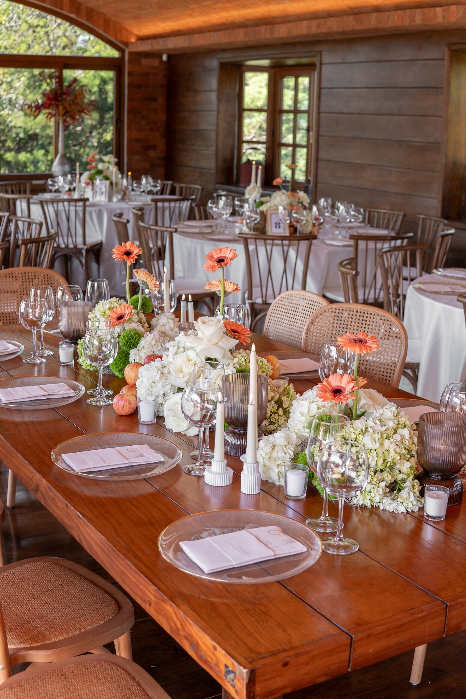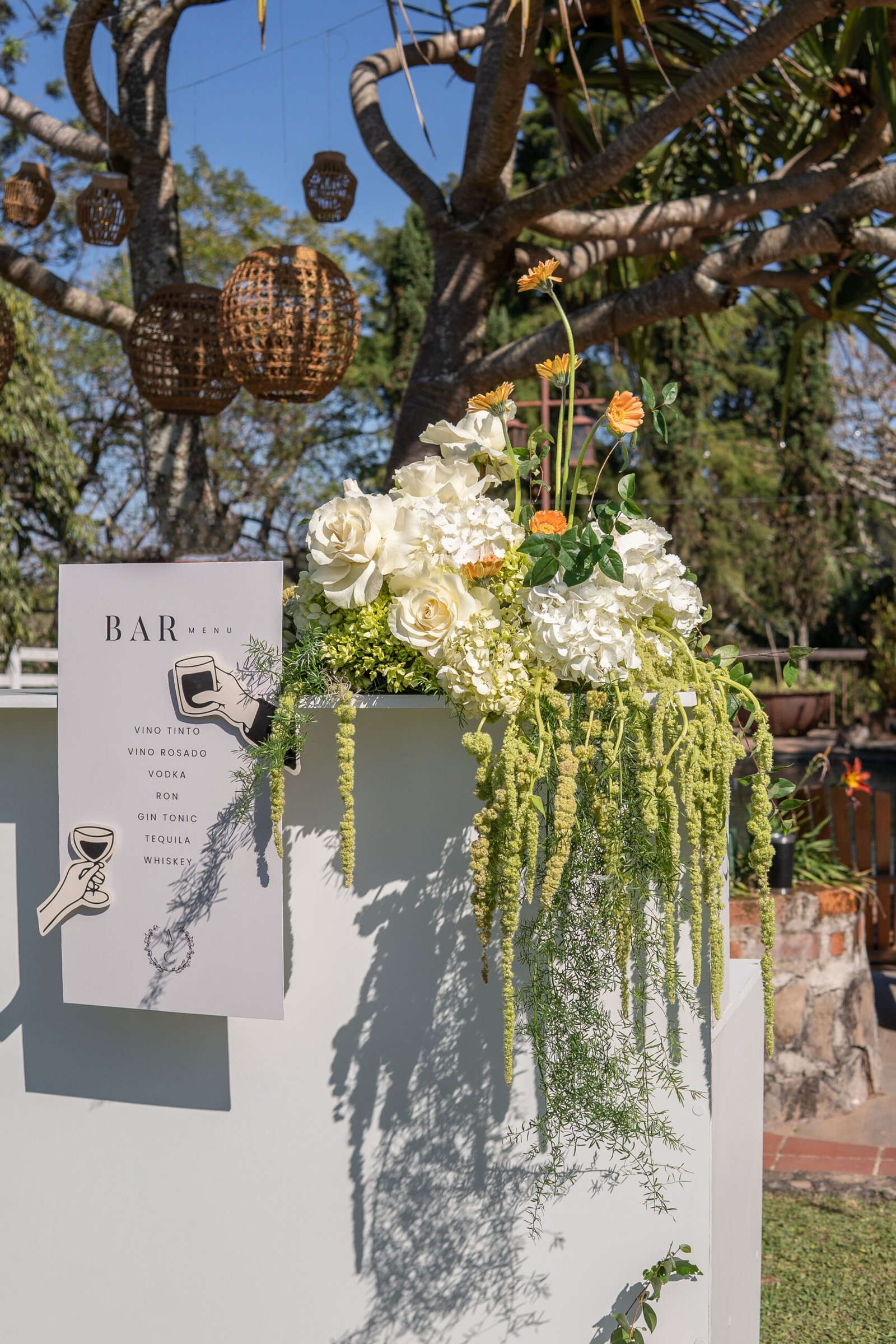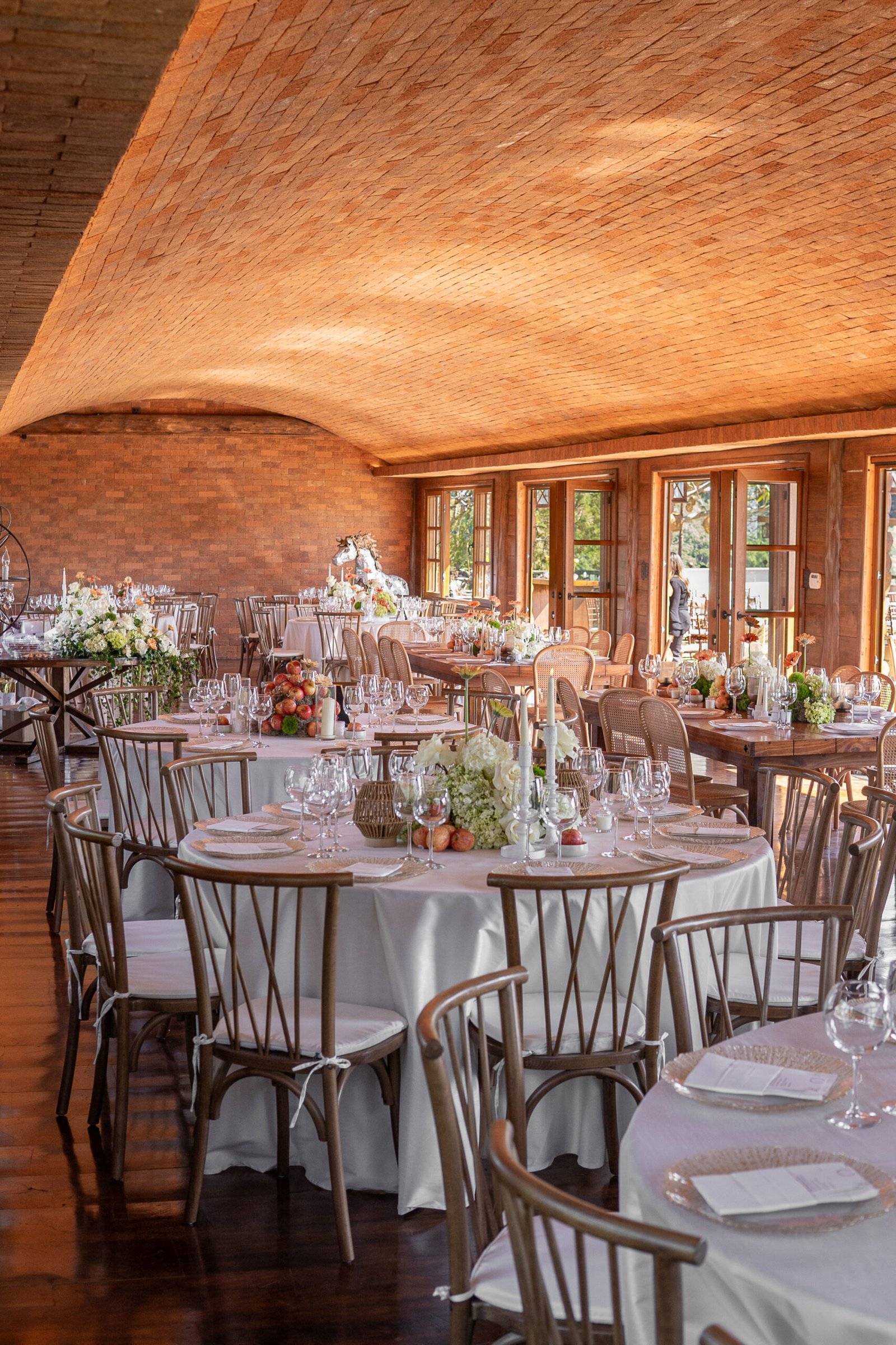 Ari & César’s floral design was created to blend naturally with the rustic charm of their countryside venue. The proposal sought to enhance the warmth of the space through a refined harmony of fresh, modern elements—resulting in a look that felt both grounded and contemporary.