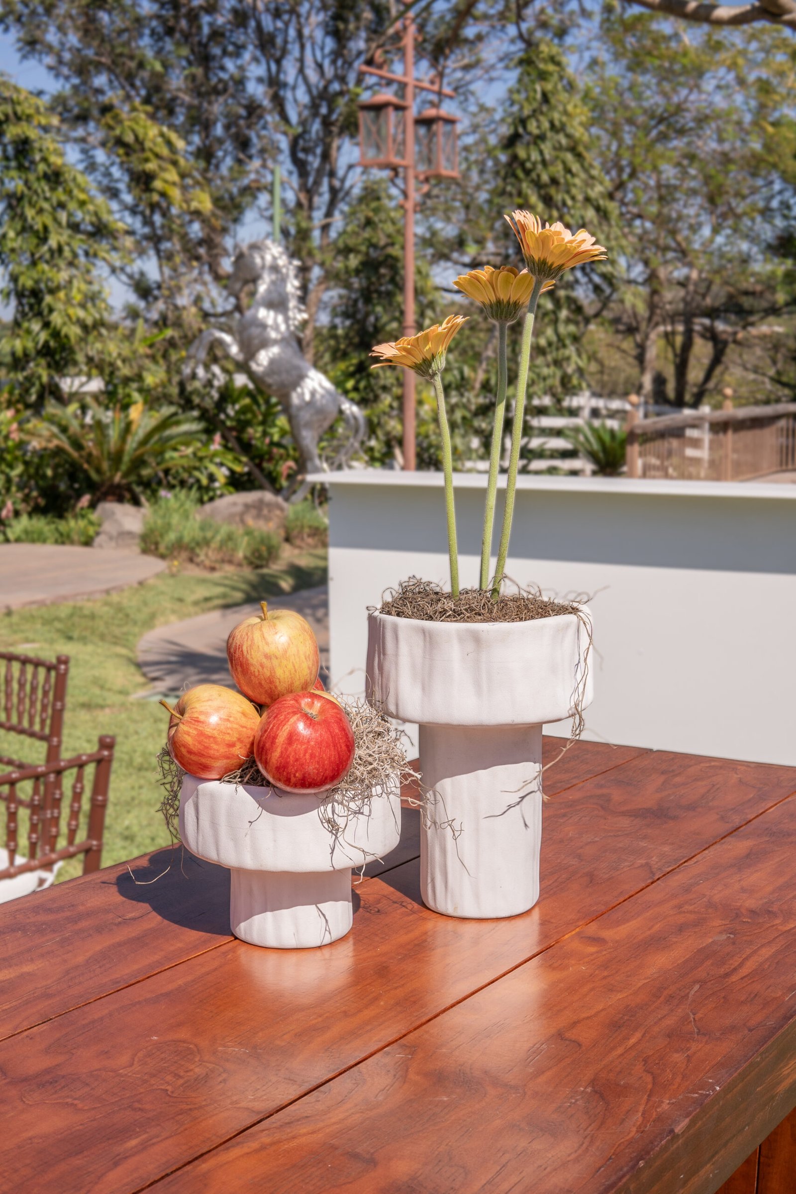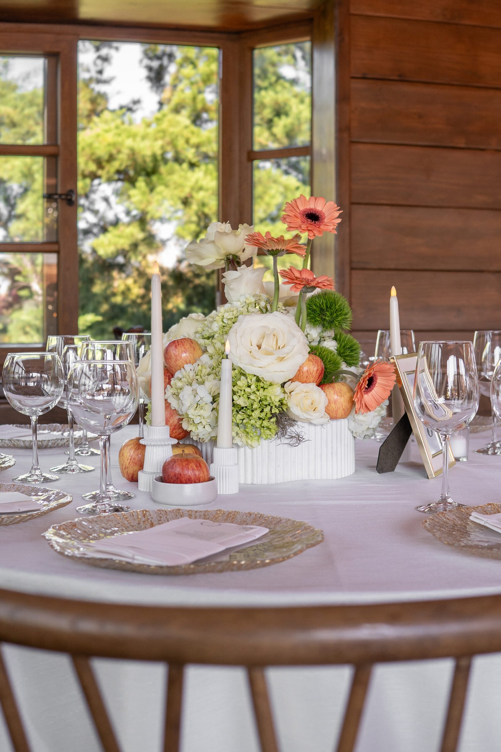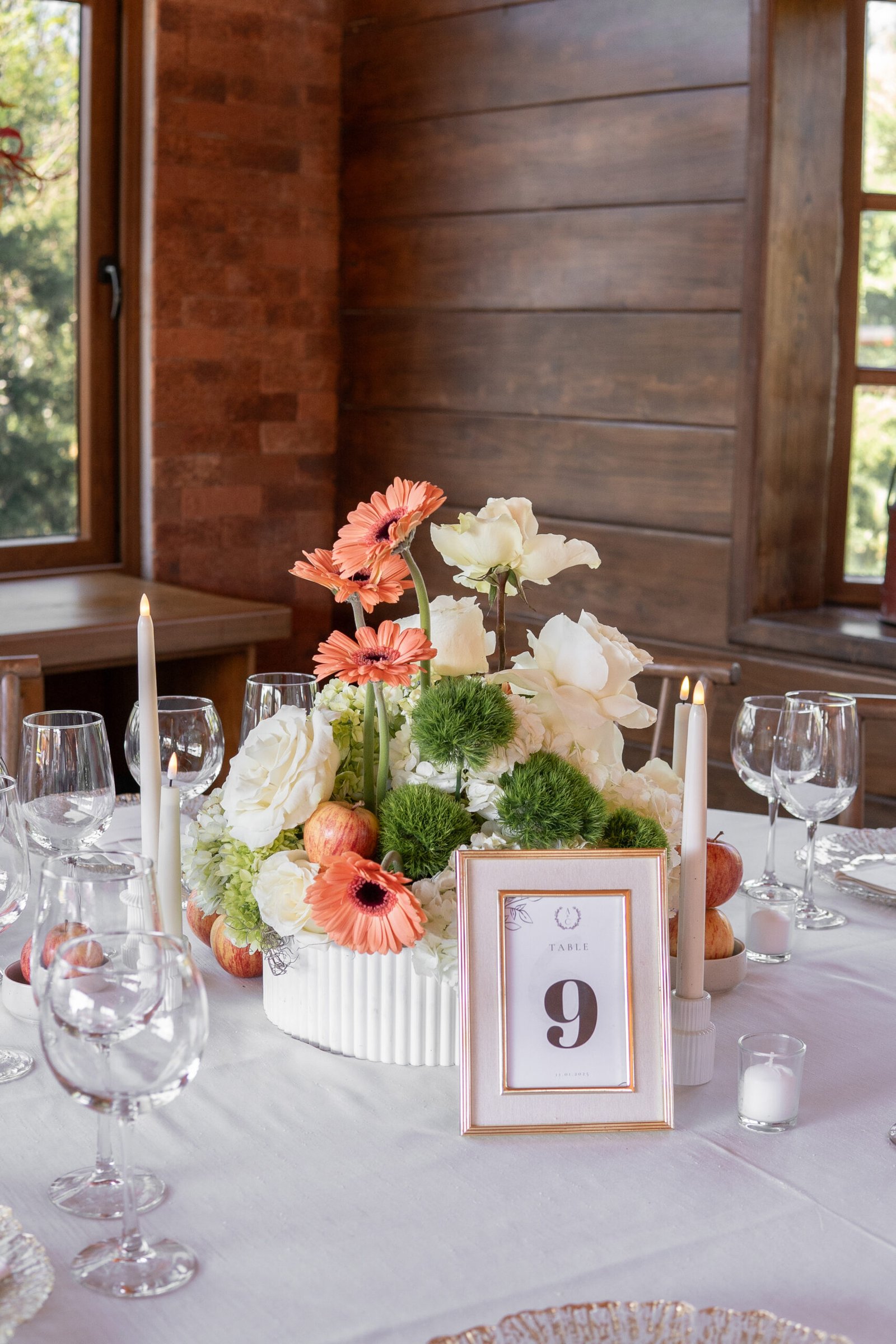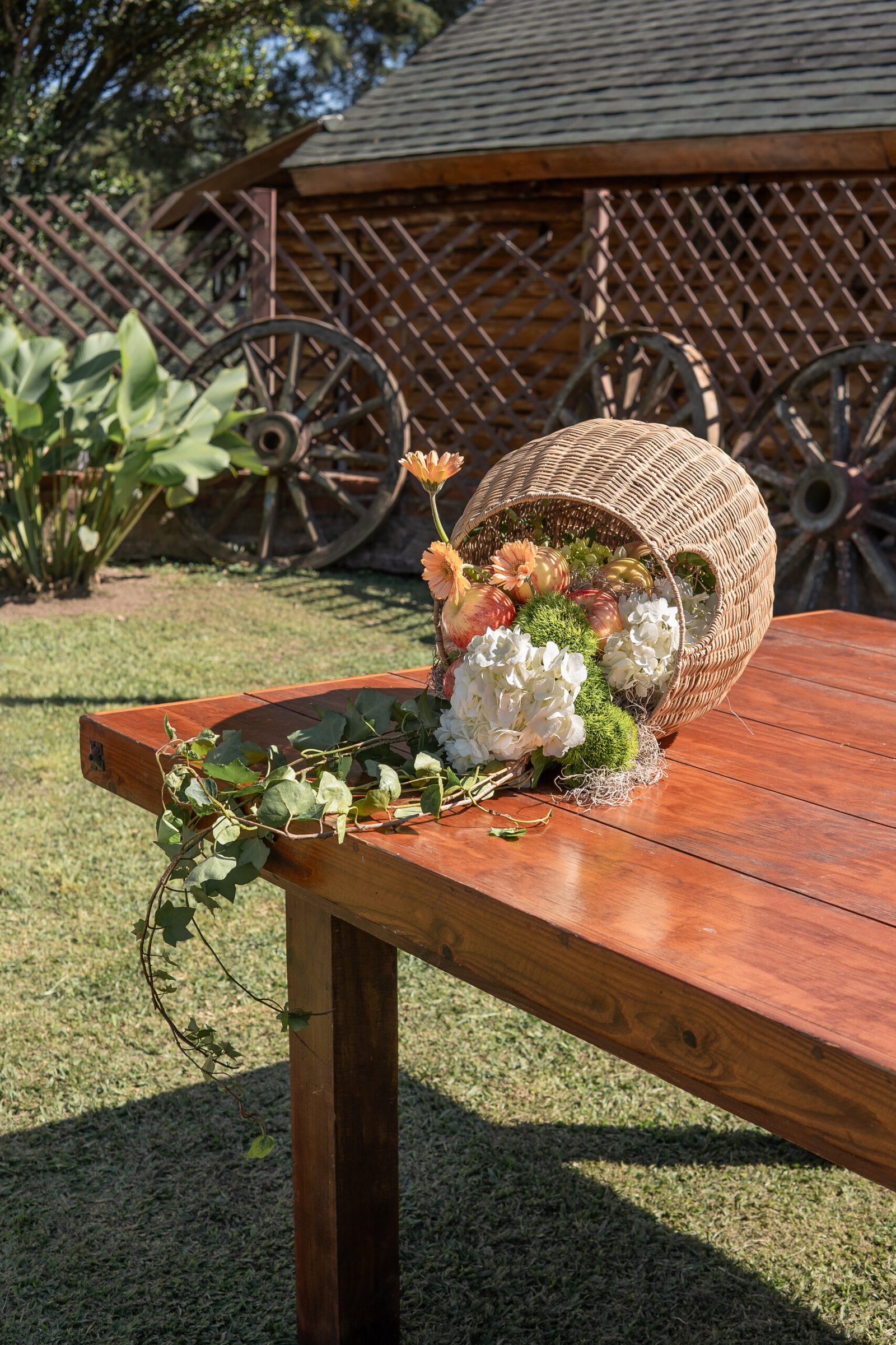 Ari & César’s floral design was created to blend naturally with the rustic charm of their countryside venue. The proposal sought to enhance the warmth of the space through a refined harmony of fresh, modern elements—resulting in a look that felt both grounded and contemporary.