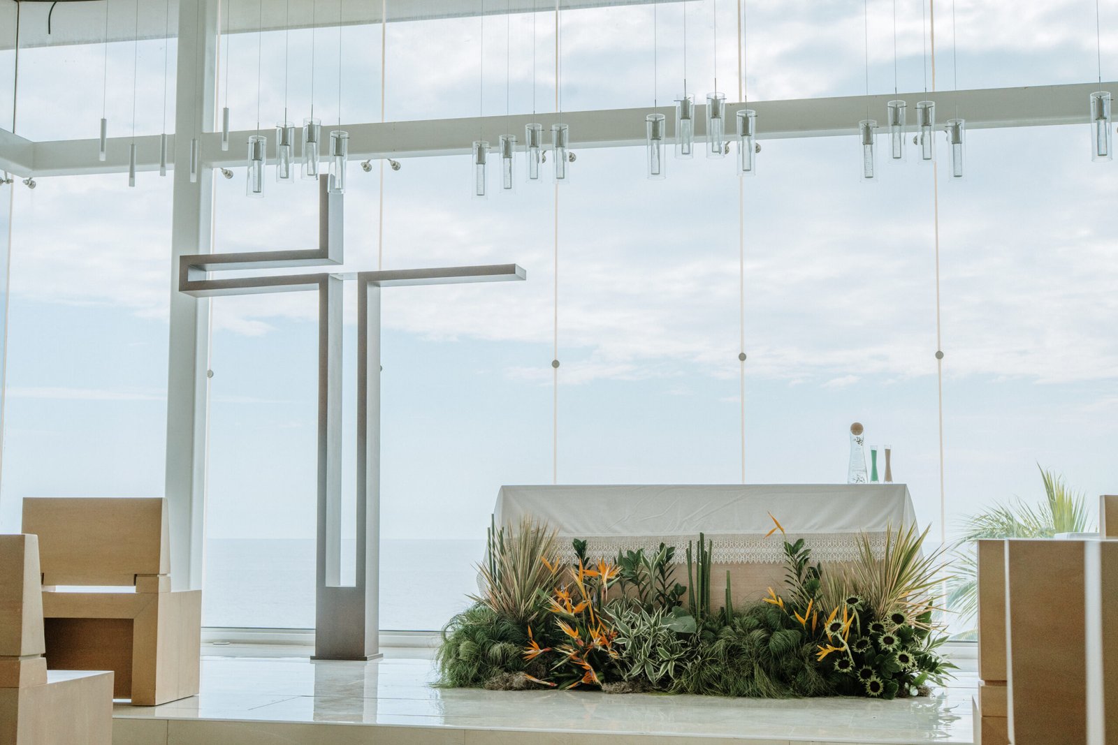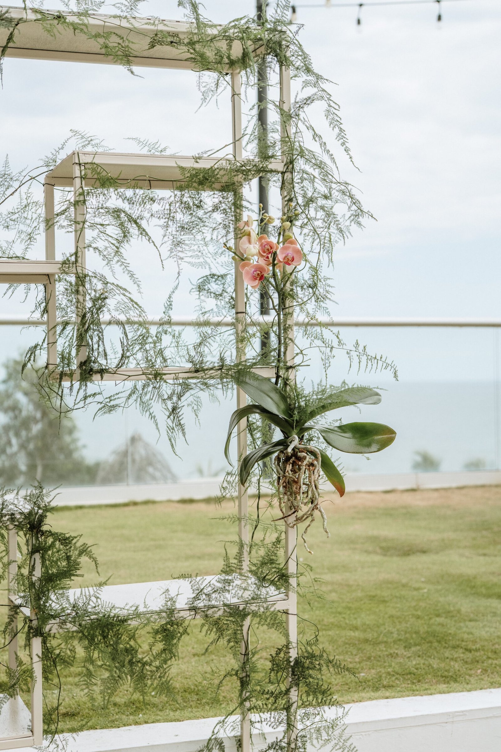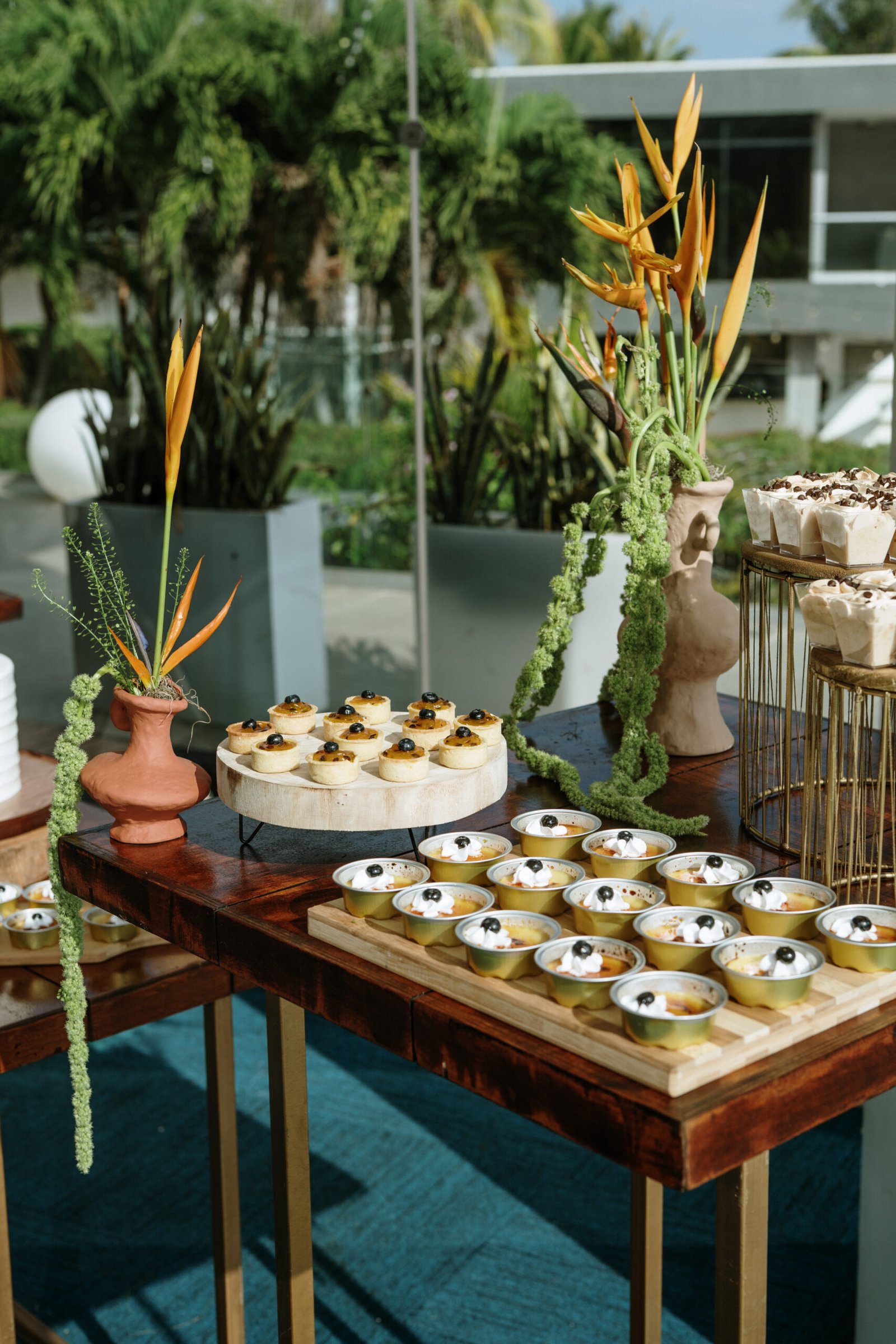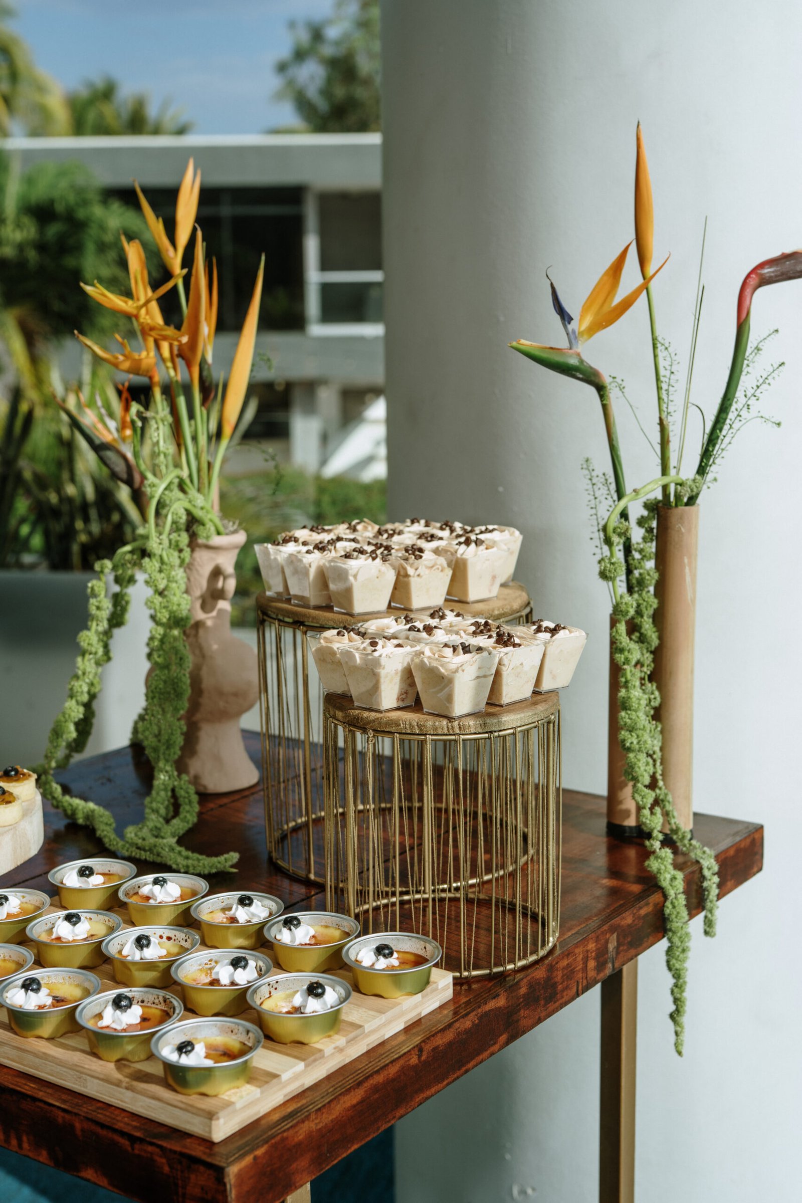 We leaned into the natural scale of tropical elements to build visual weight in all the right places oversized installations, grounded table moments, and a sweetheart area that felt both bold and organic. The goal wasn’t to fill the space, but to let it breathe with purpose. As sunset hit the cliffs, the palette softened, and the whole setting took on a glow that made the tropicals feel editorial.