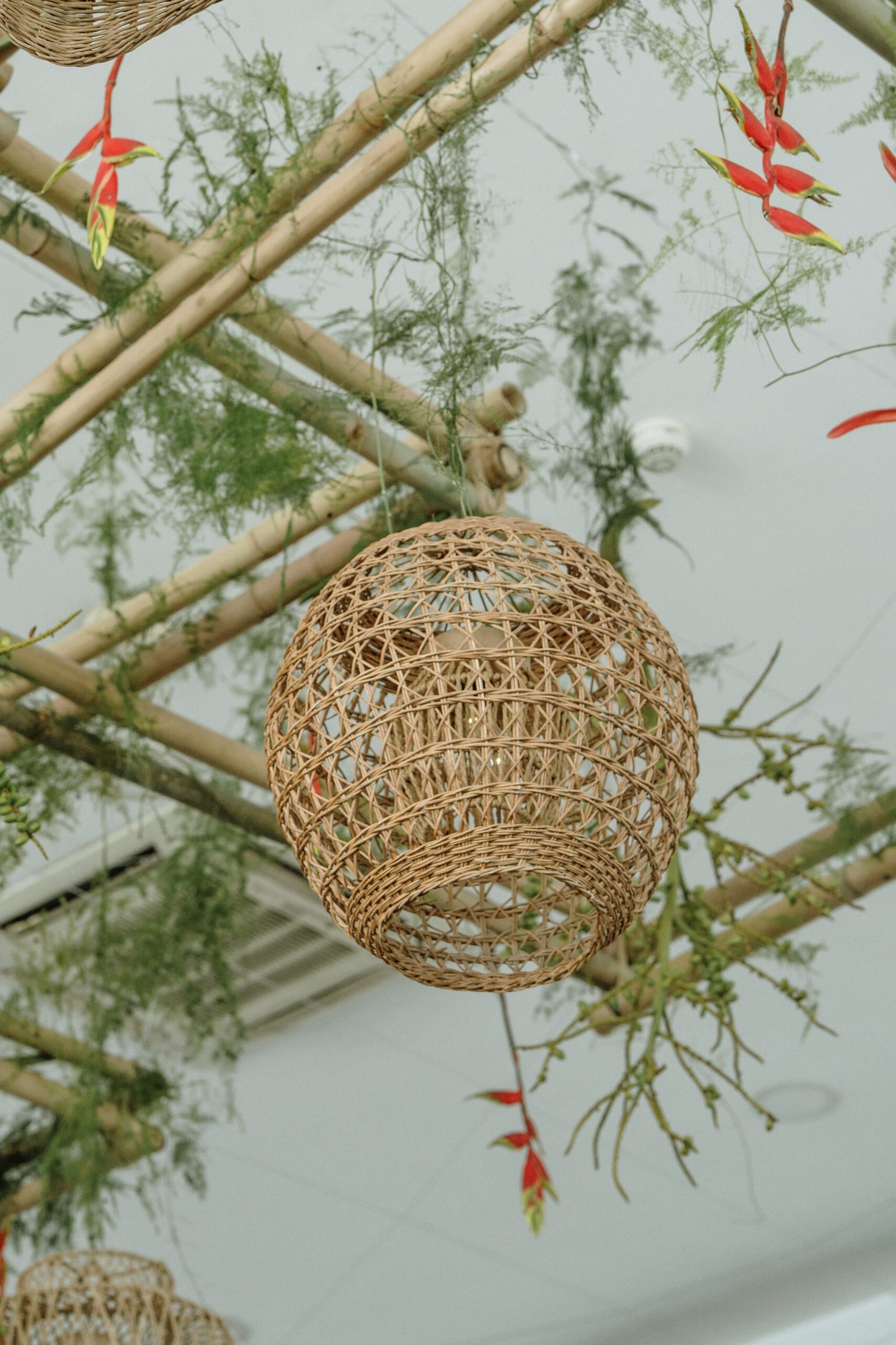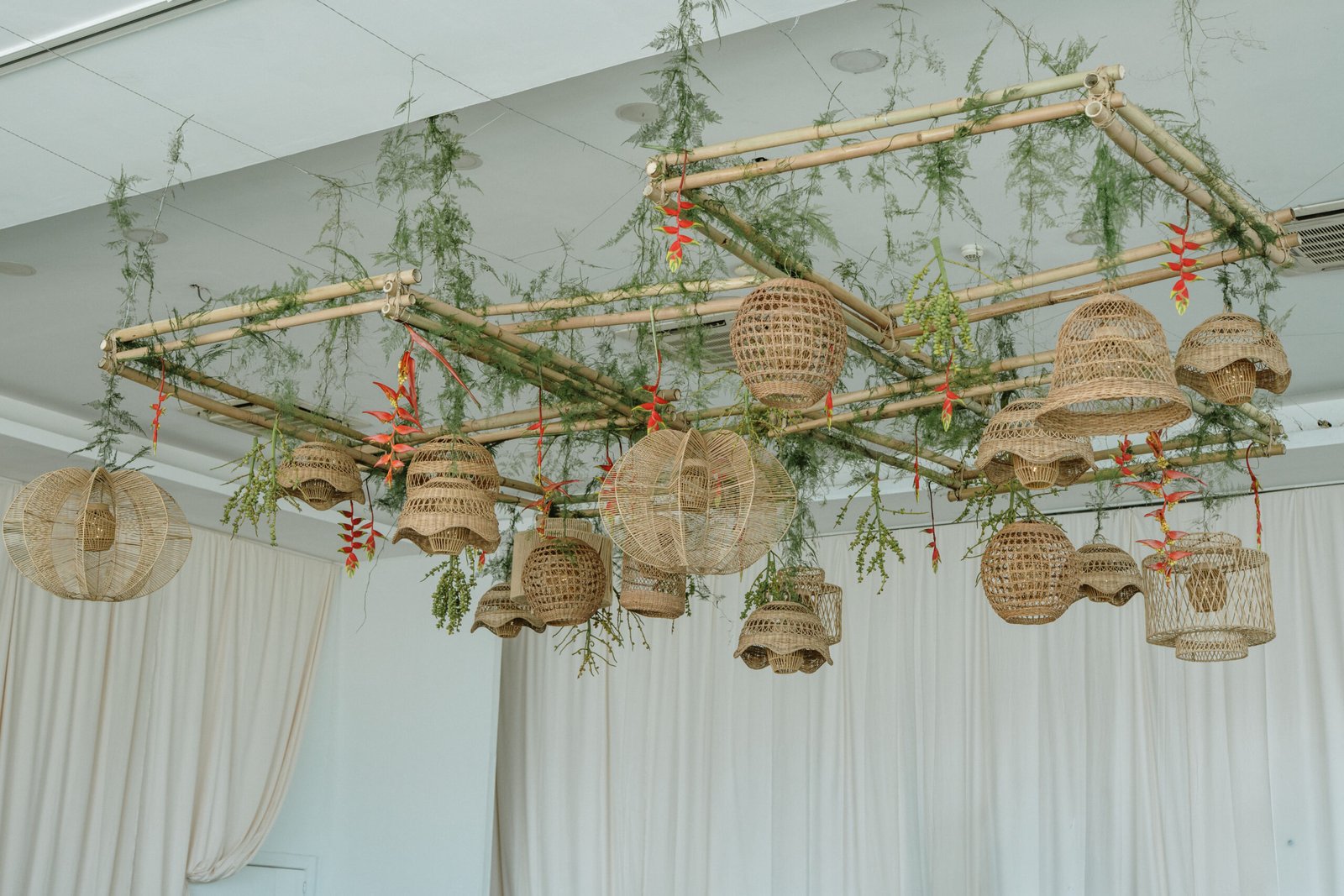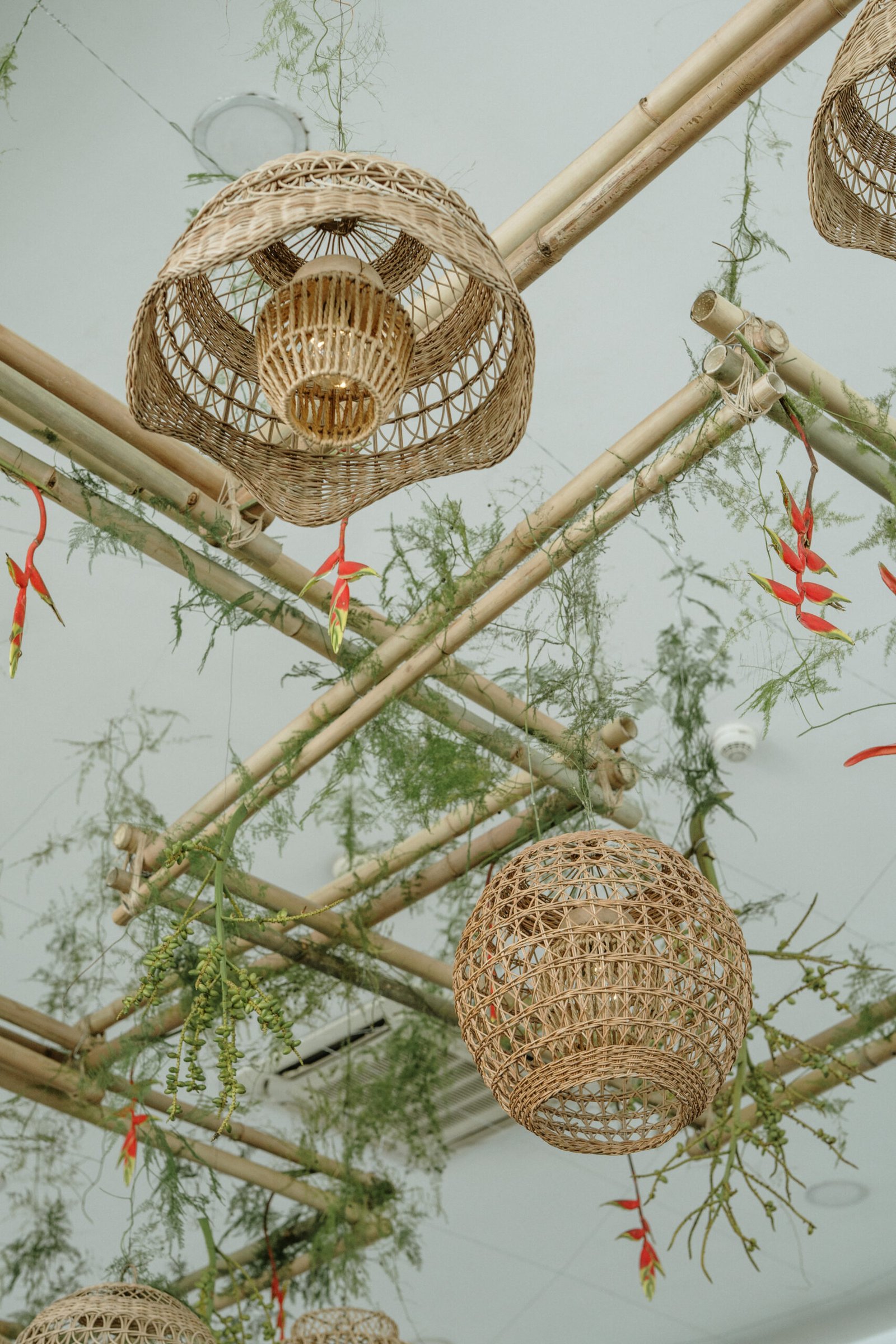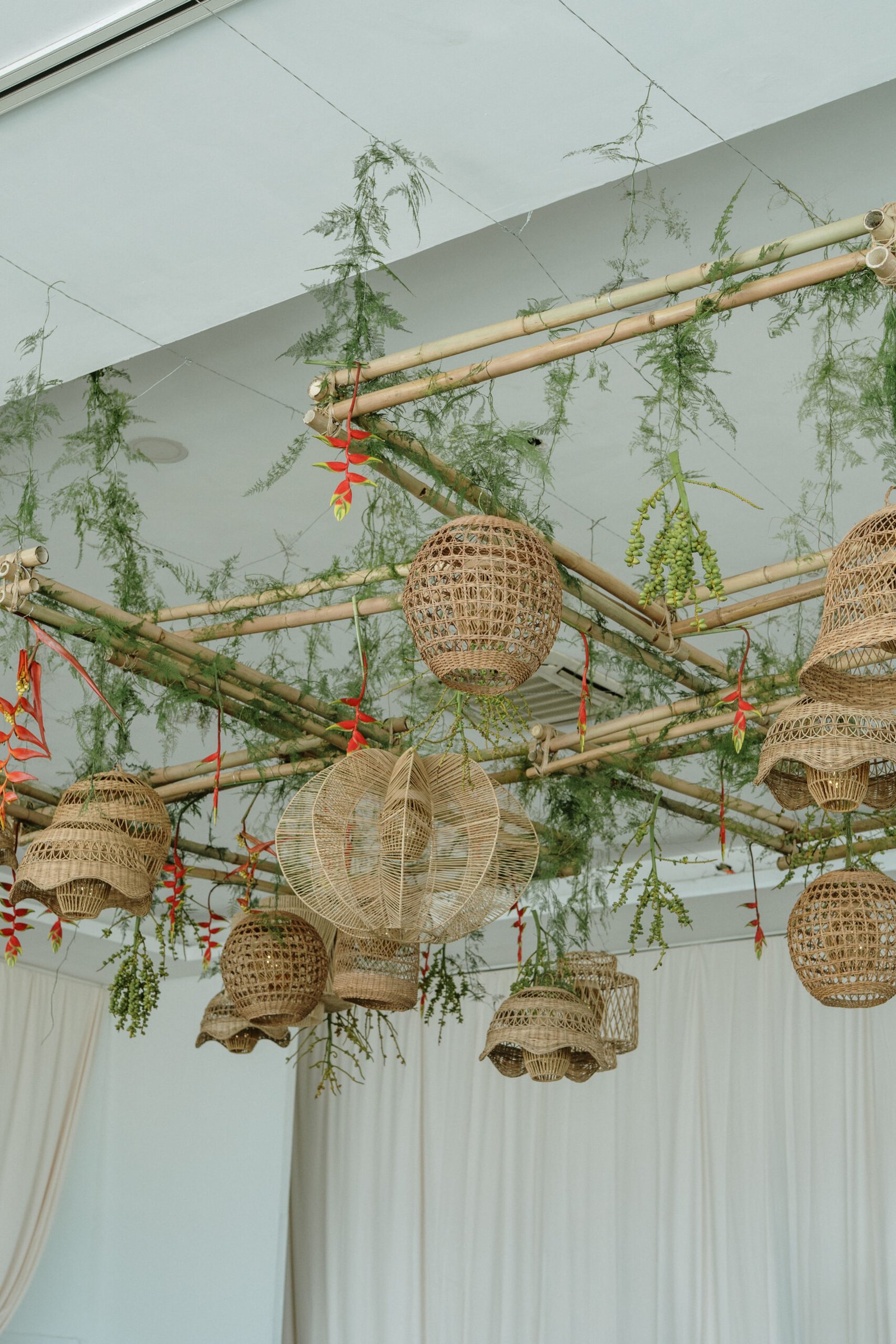 This wedding design explored volume through foliage. It wasn’t about abundance it was about shape! The look was lush but intentional: braided greens, sculptural heliconias, and textured compositions that added air and movement instead of clutter.