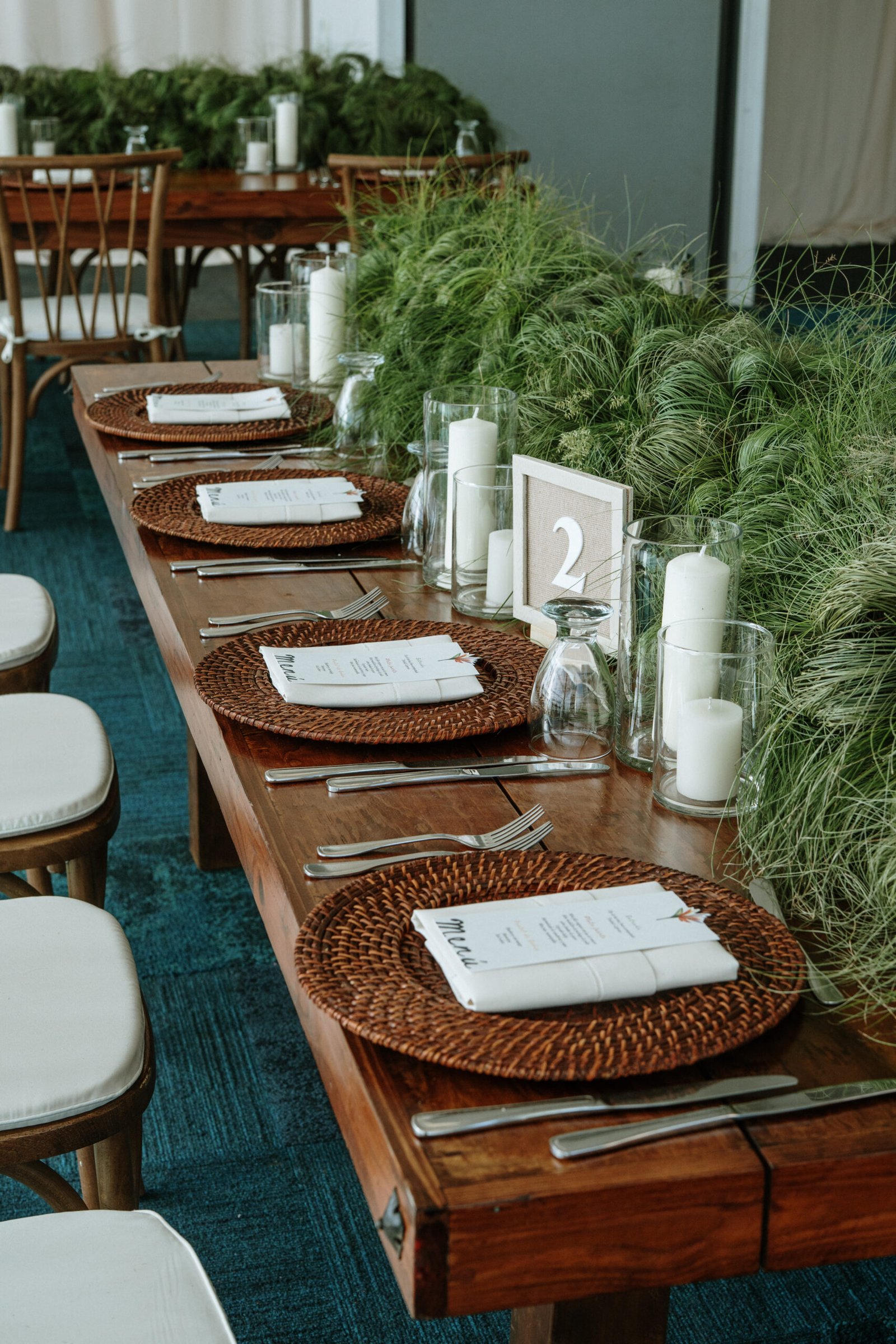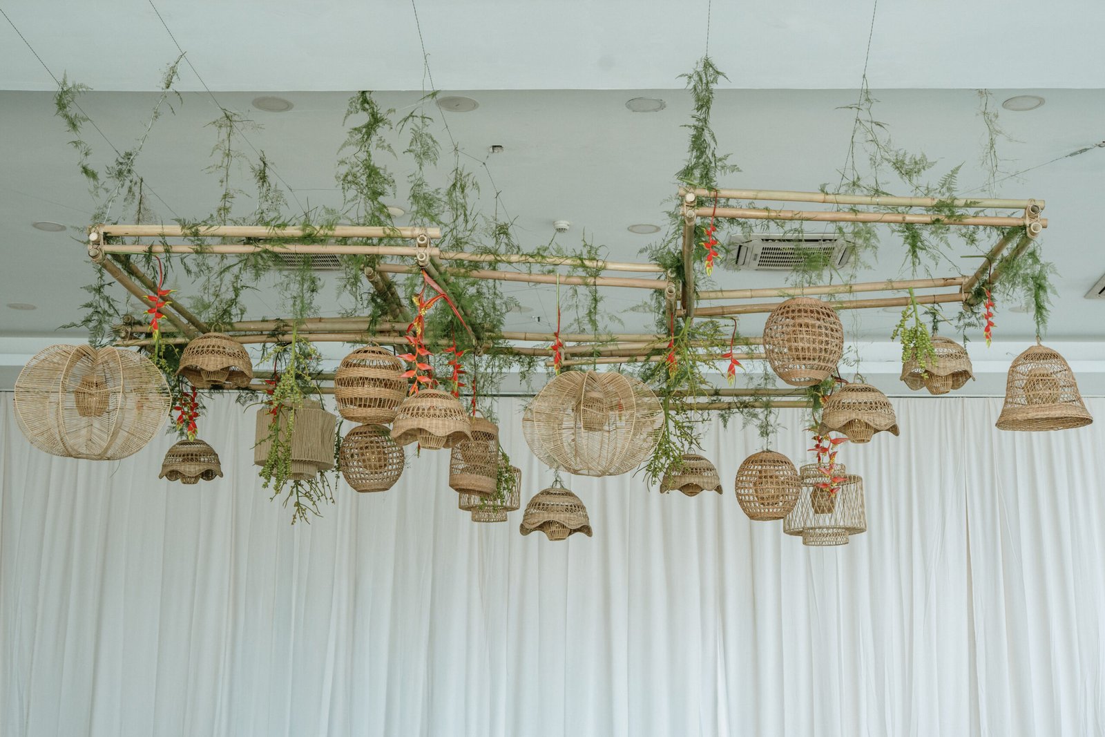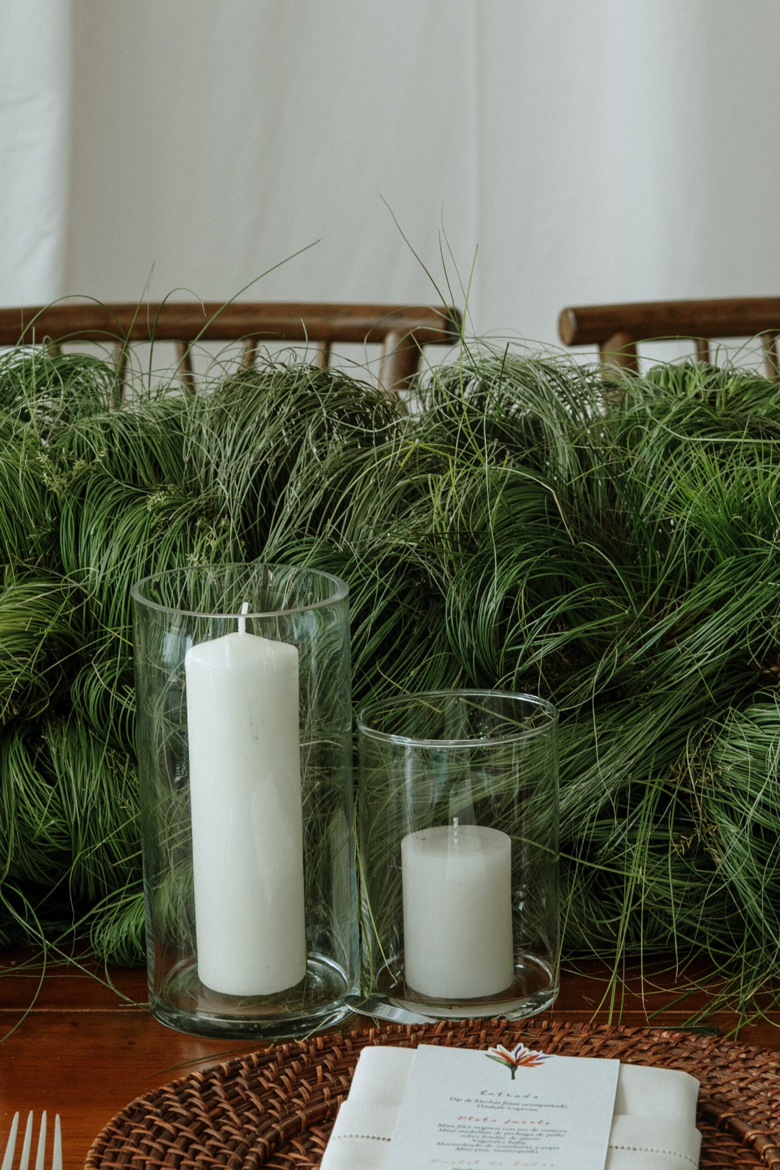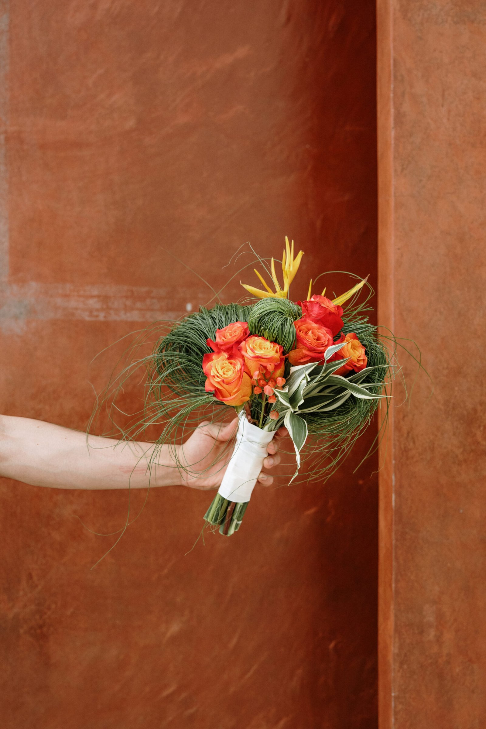 This wedding design explored volume through foliage. It wasn’t about abundance it was about shape! The look was lush but intentional: braided greens, sculptural heliconias, and textured compositions that added air and movement instead of clutter.