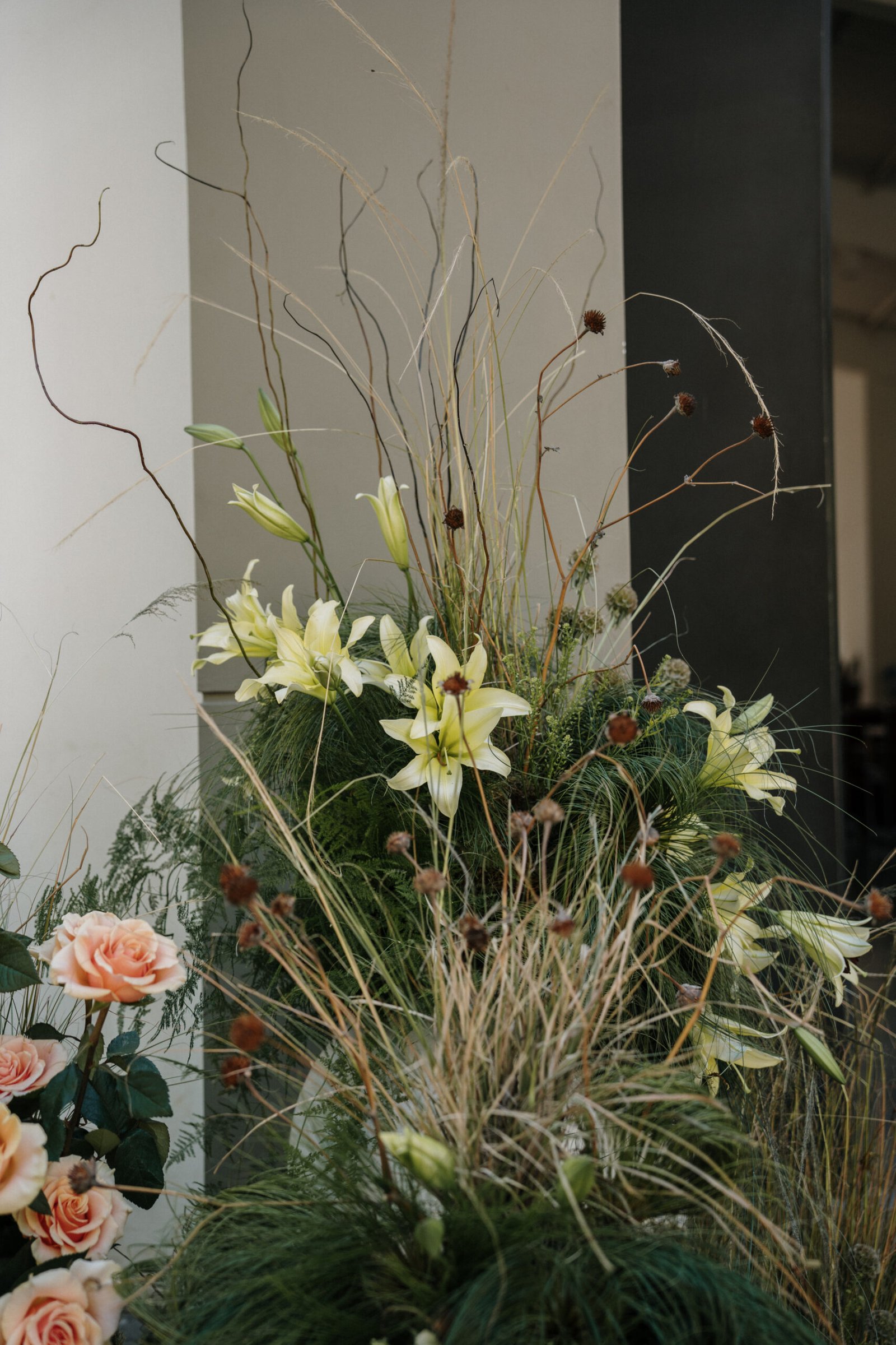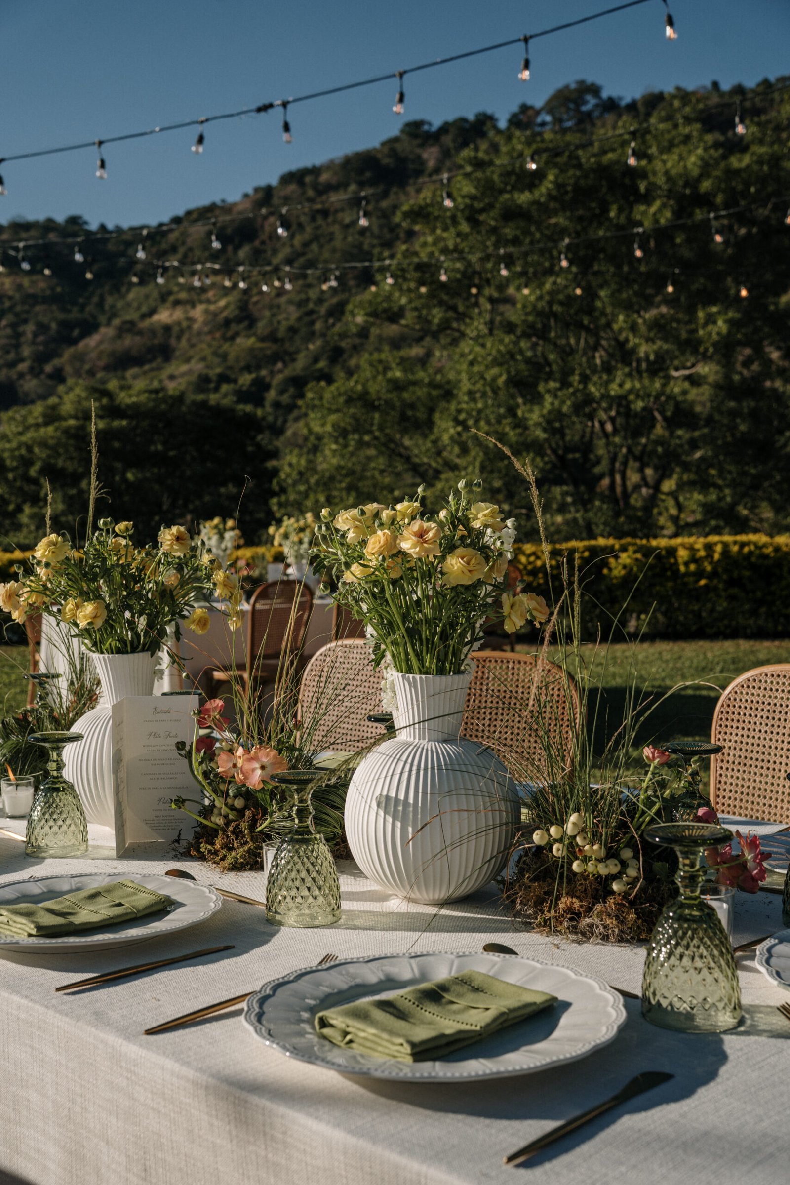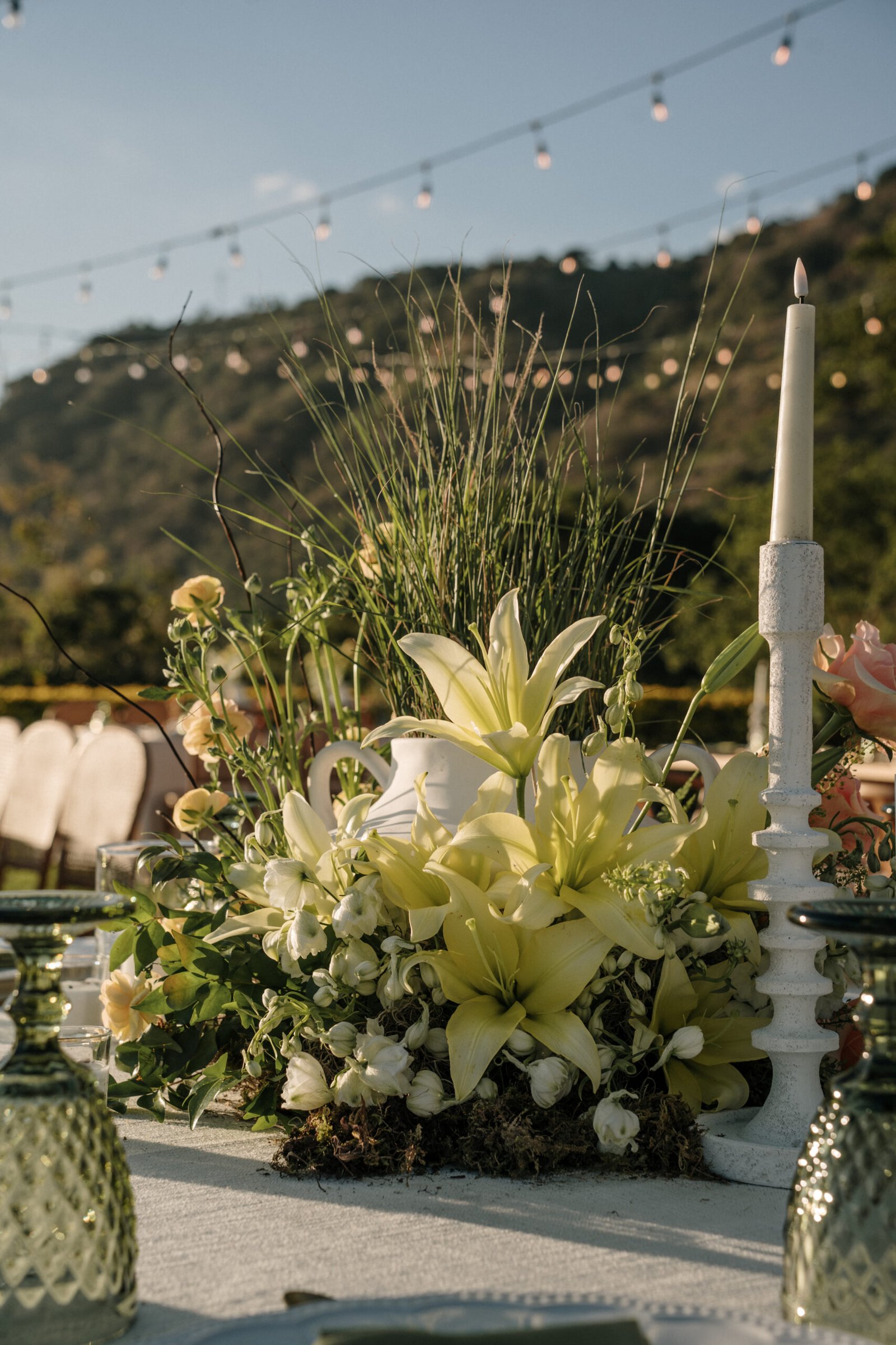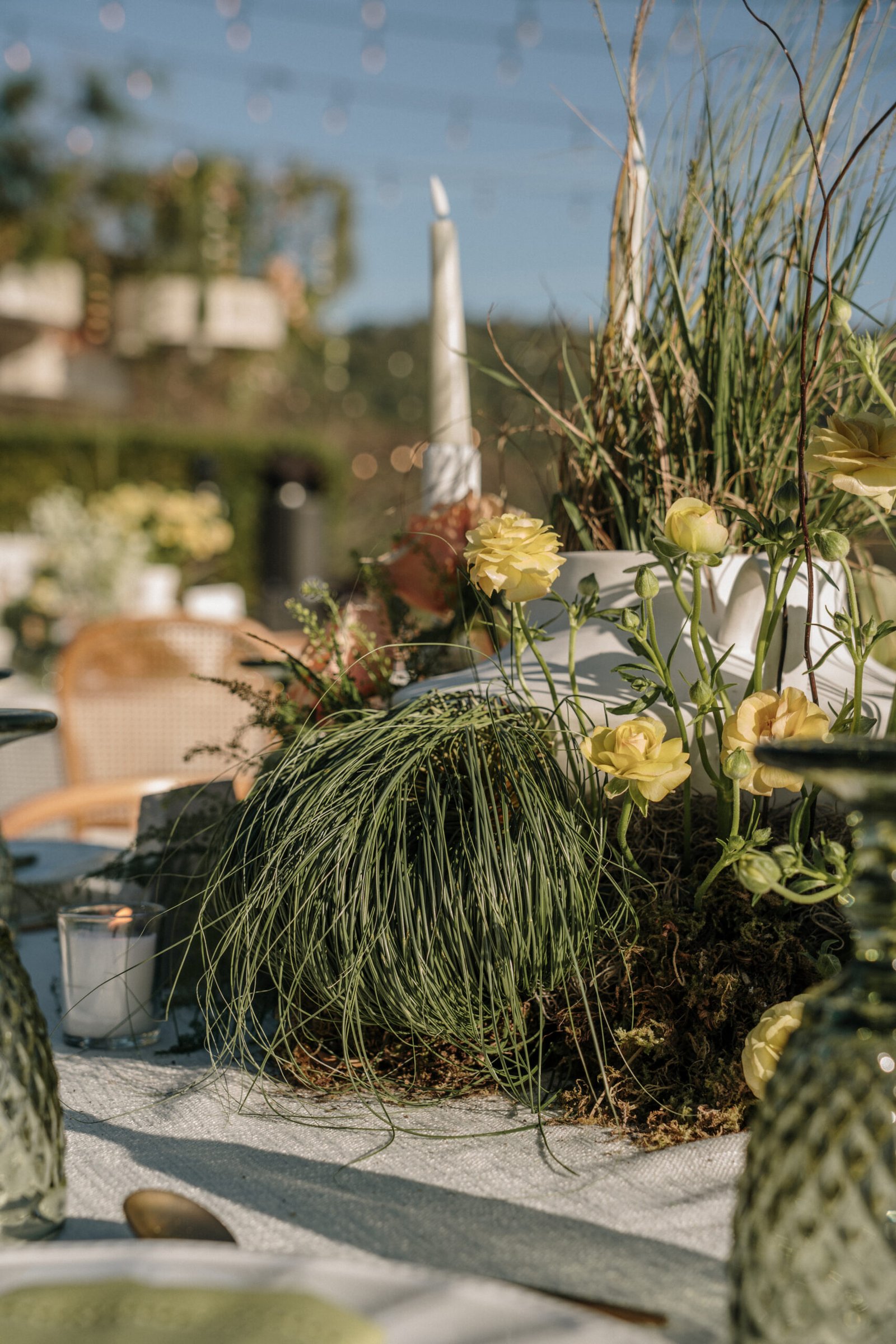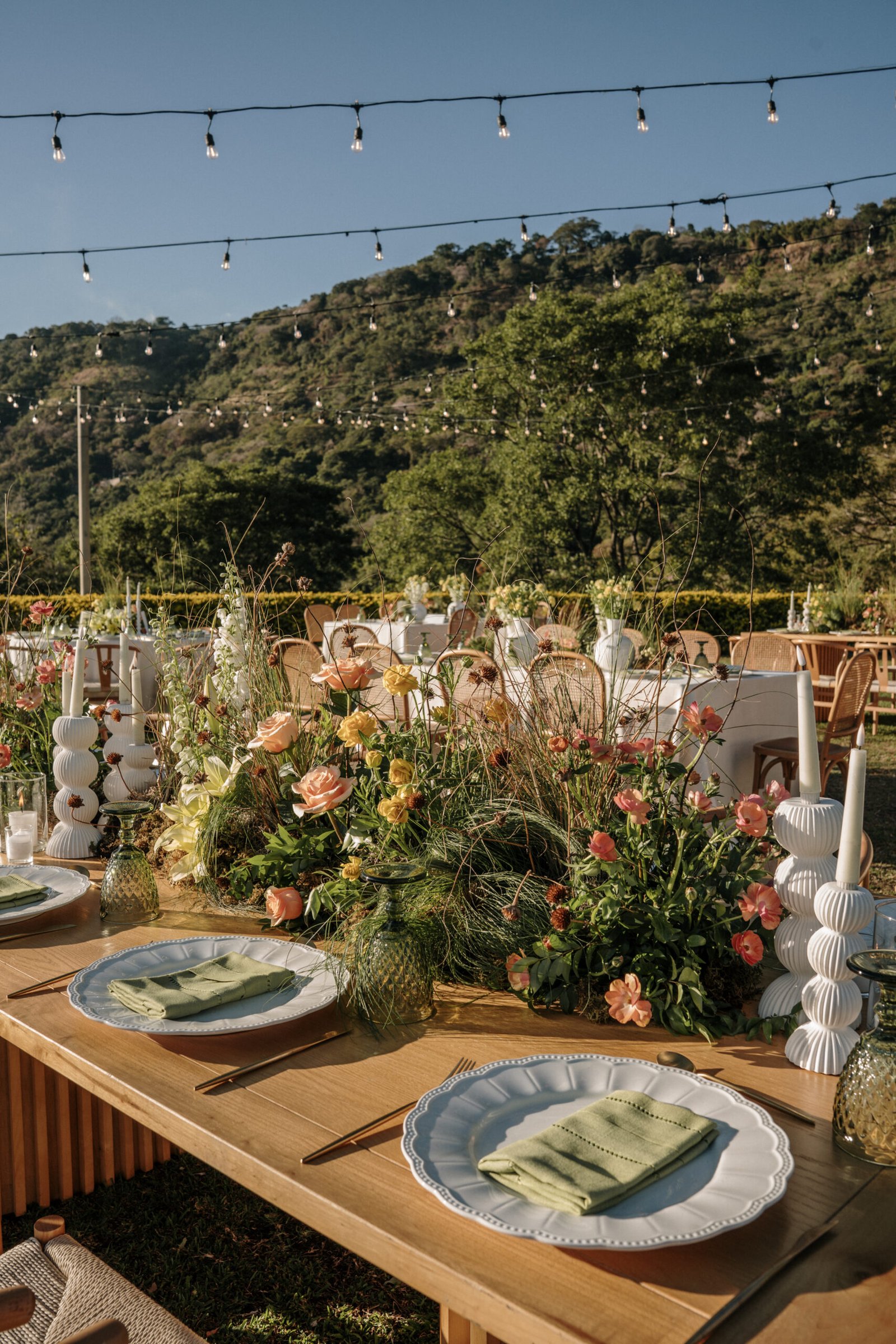 The mix of color warm peaches, soft yellows, ivory tones and textured greens gave the event an effortless vibrancy, grounded by earthy bases and handmade vases. It was an homage to natural forms, to wild elegance, and to letting nature take the lead.