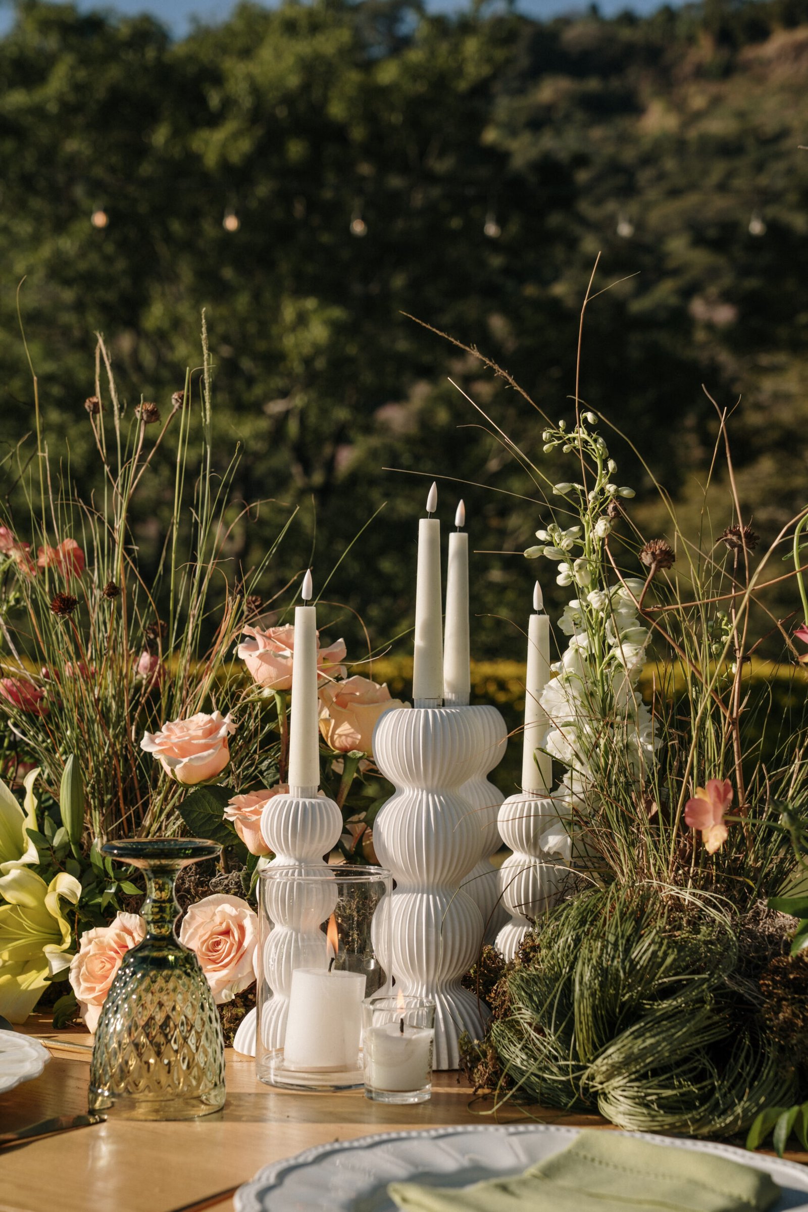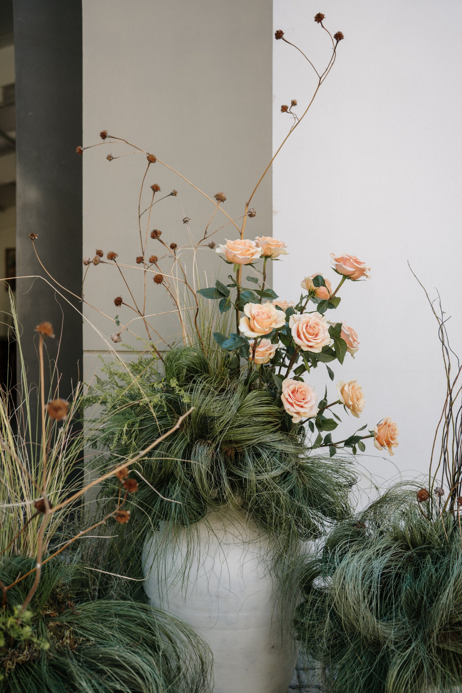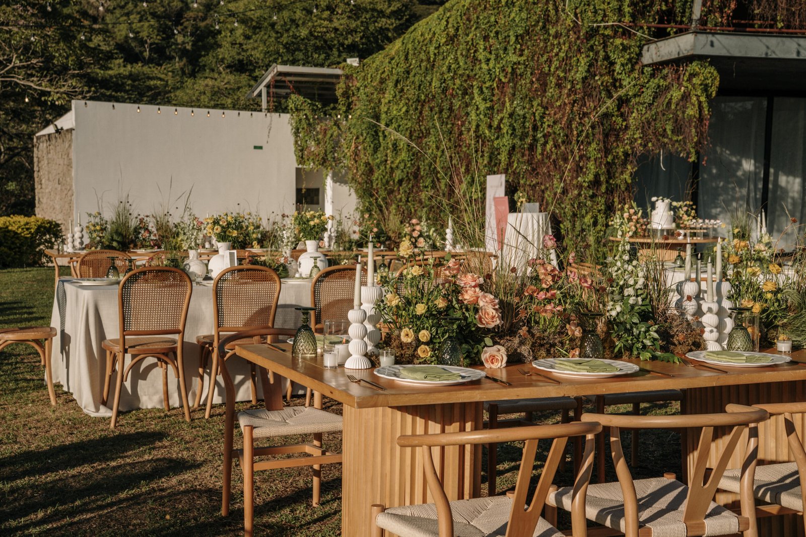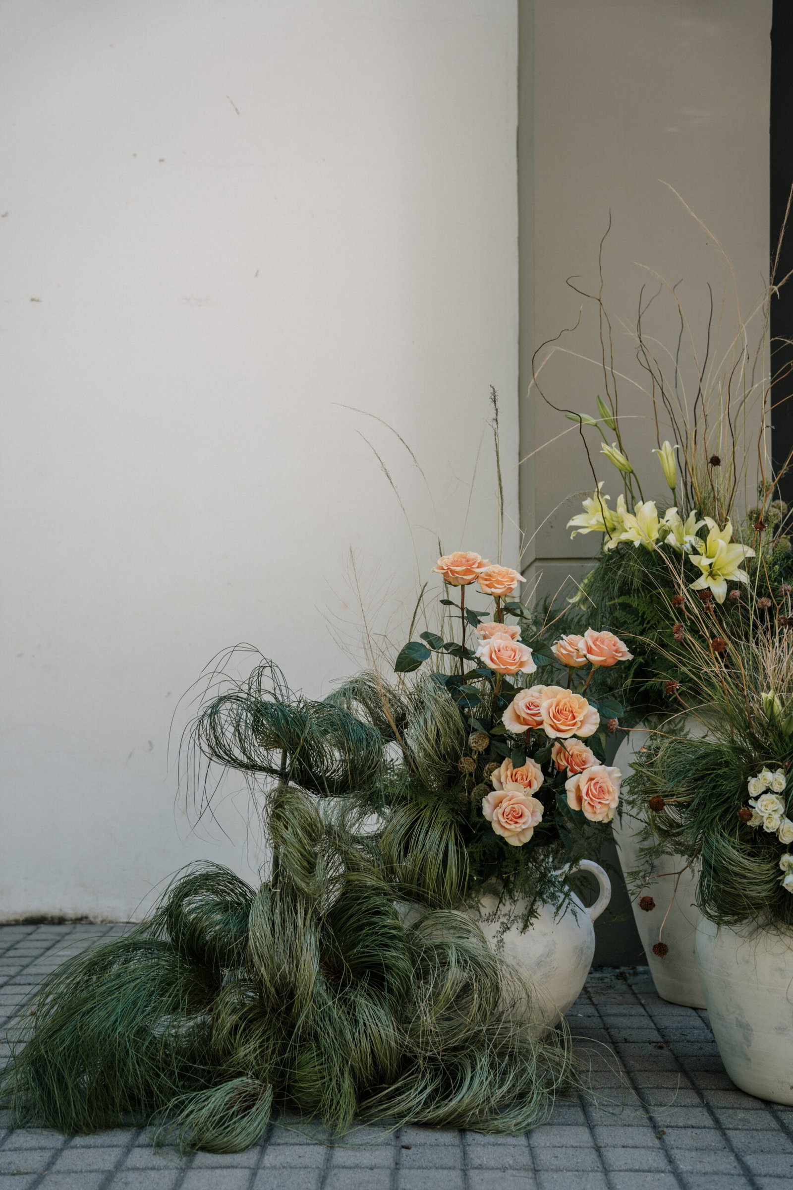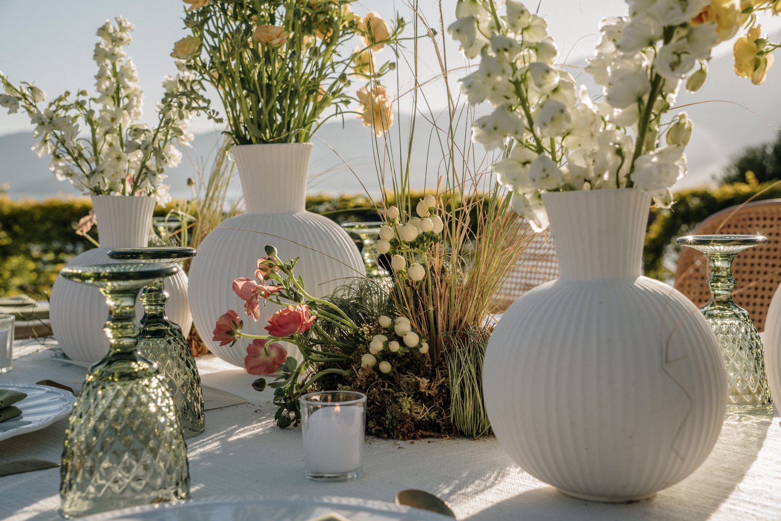 The mix of color warm peaches, soft yellows, ivory tones and textured greens gave the event an effortless vibrancy, grounded by earthy bases and handmade vases. It was an homage to natural forms, to wild elegance, and to letting nature take the lead.