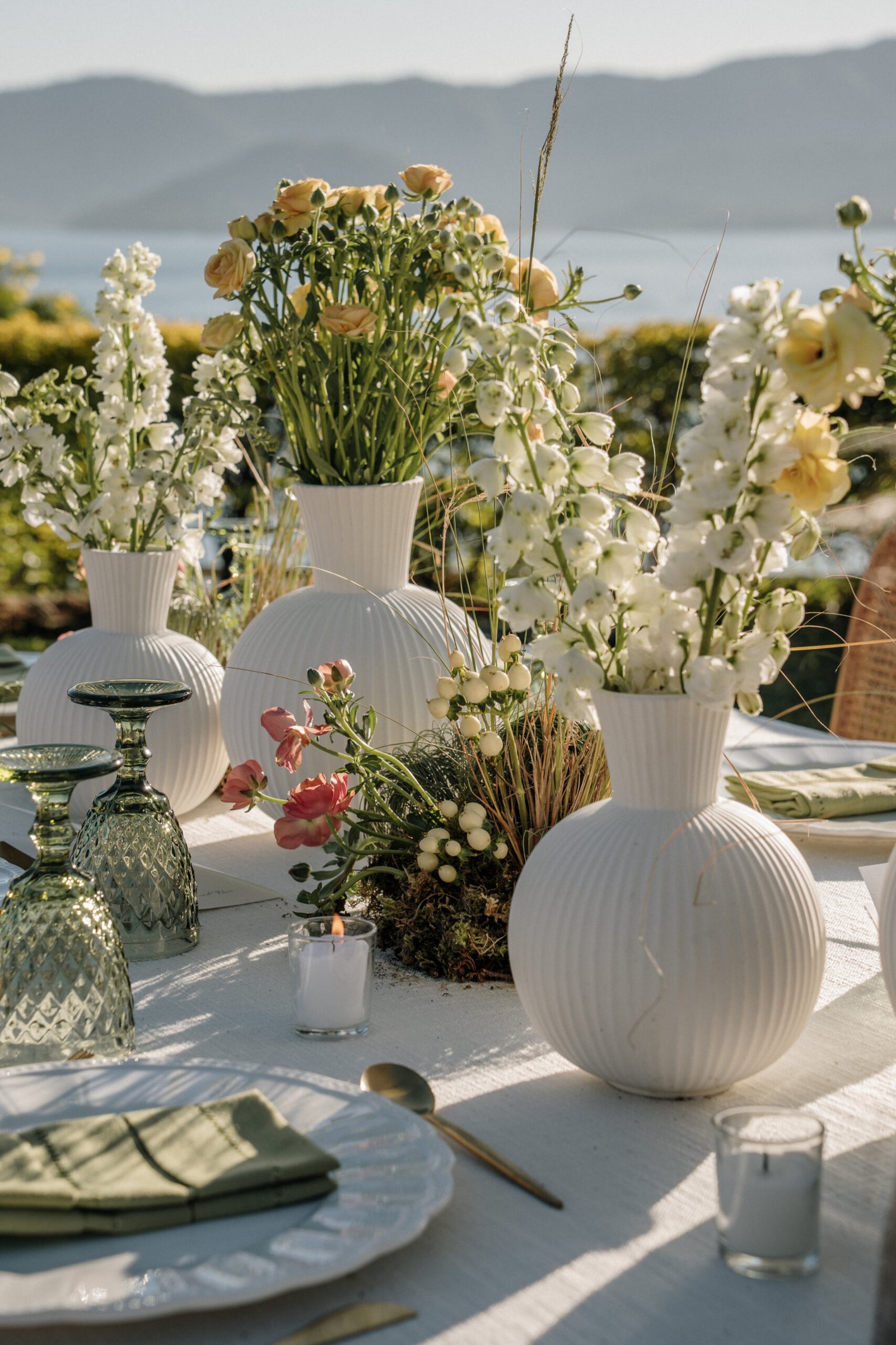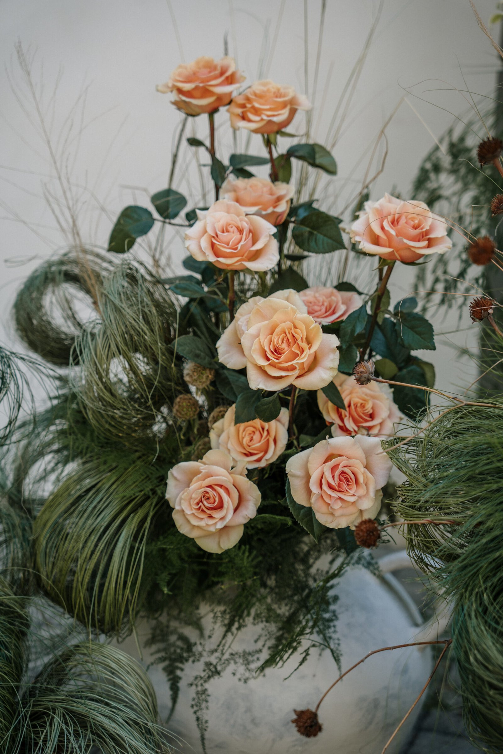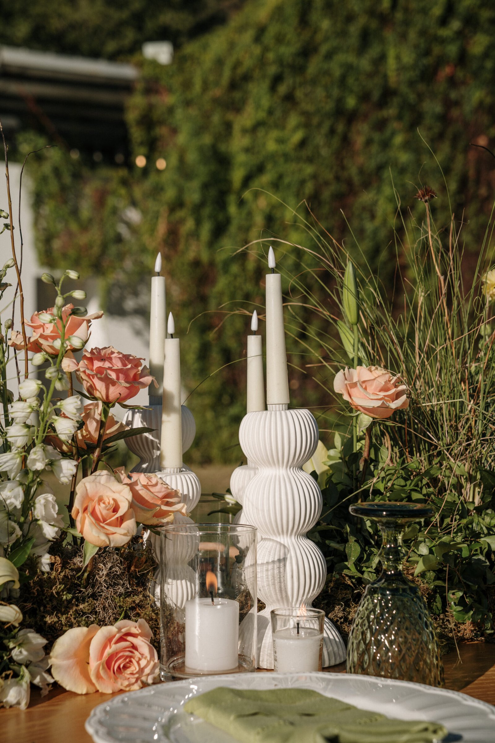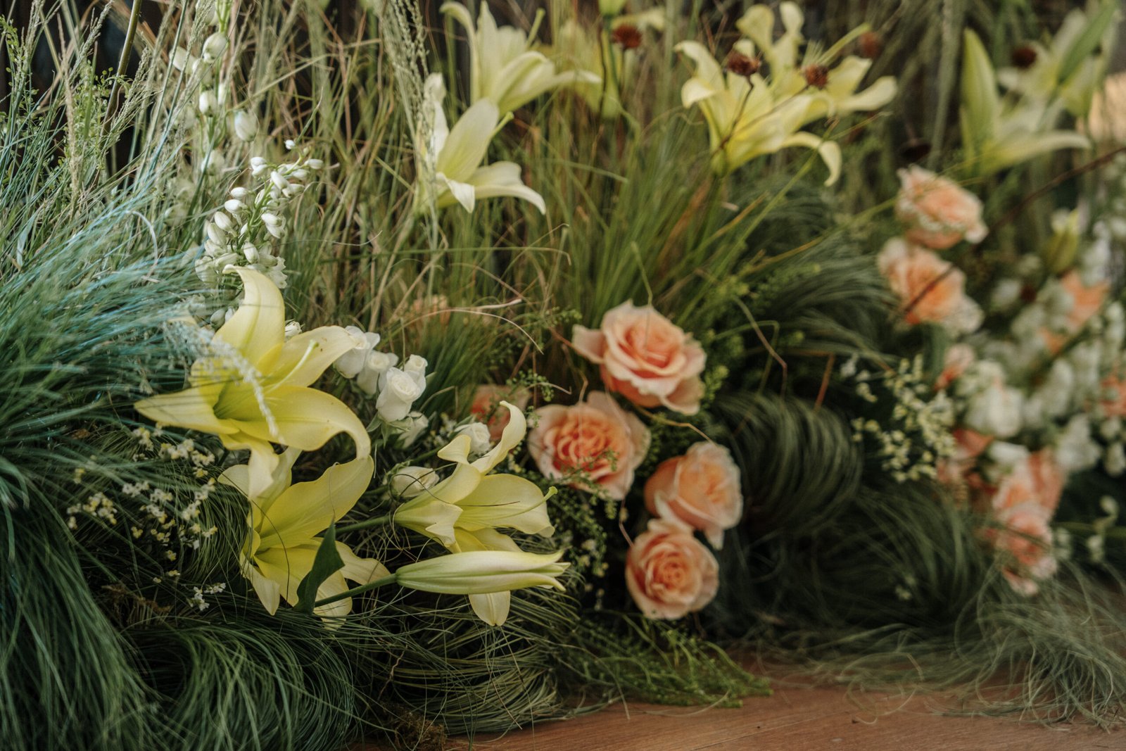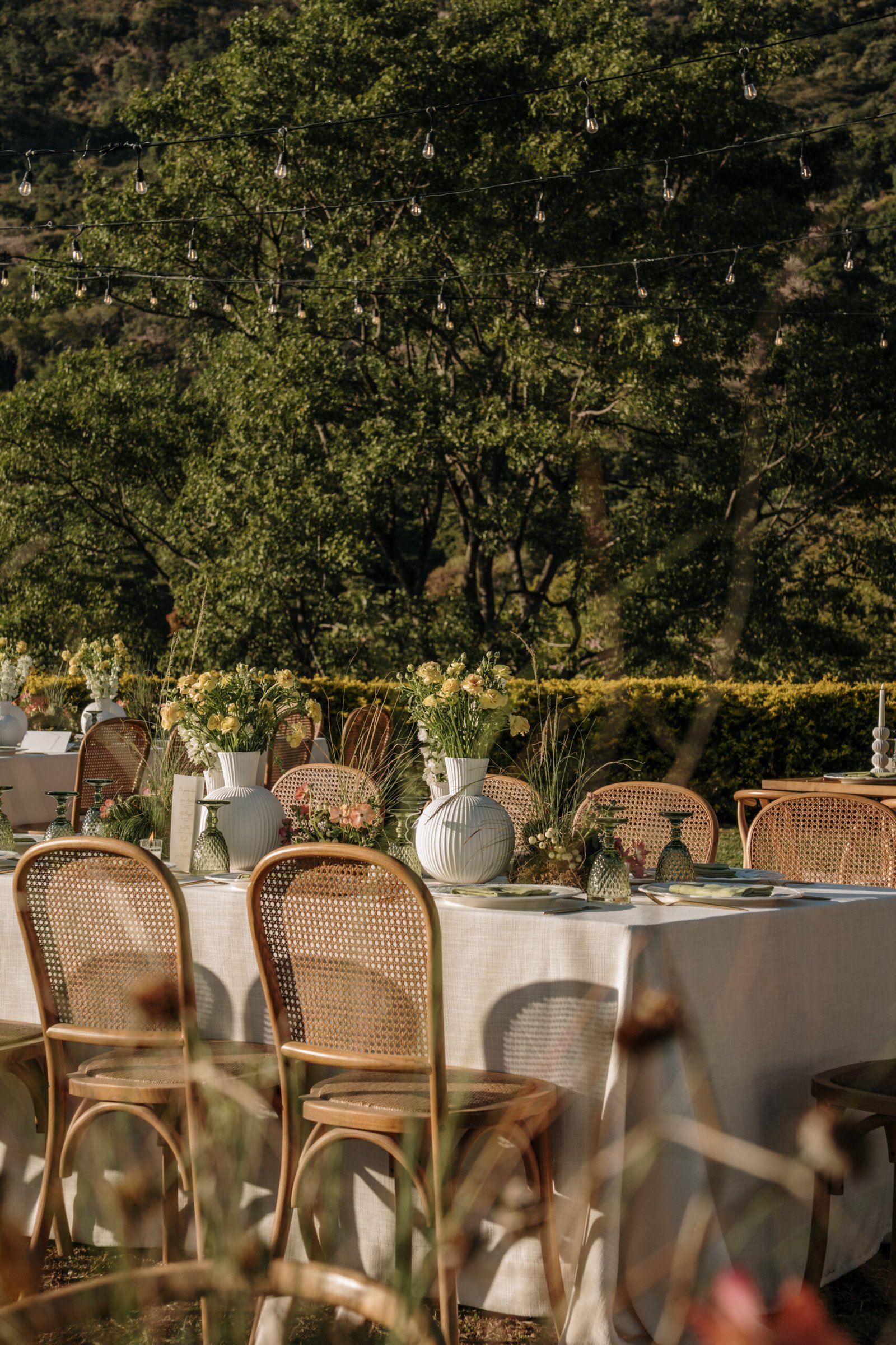 The mix of color warm peaches, soft yellows, ivory tones and textured greens gave the event an effortless vibrancy, grounded by earthy bases and handmade vases. It was an homage to natural forms, to wild elegance, and to letting nature take the lead.