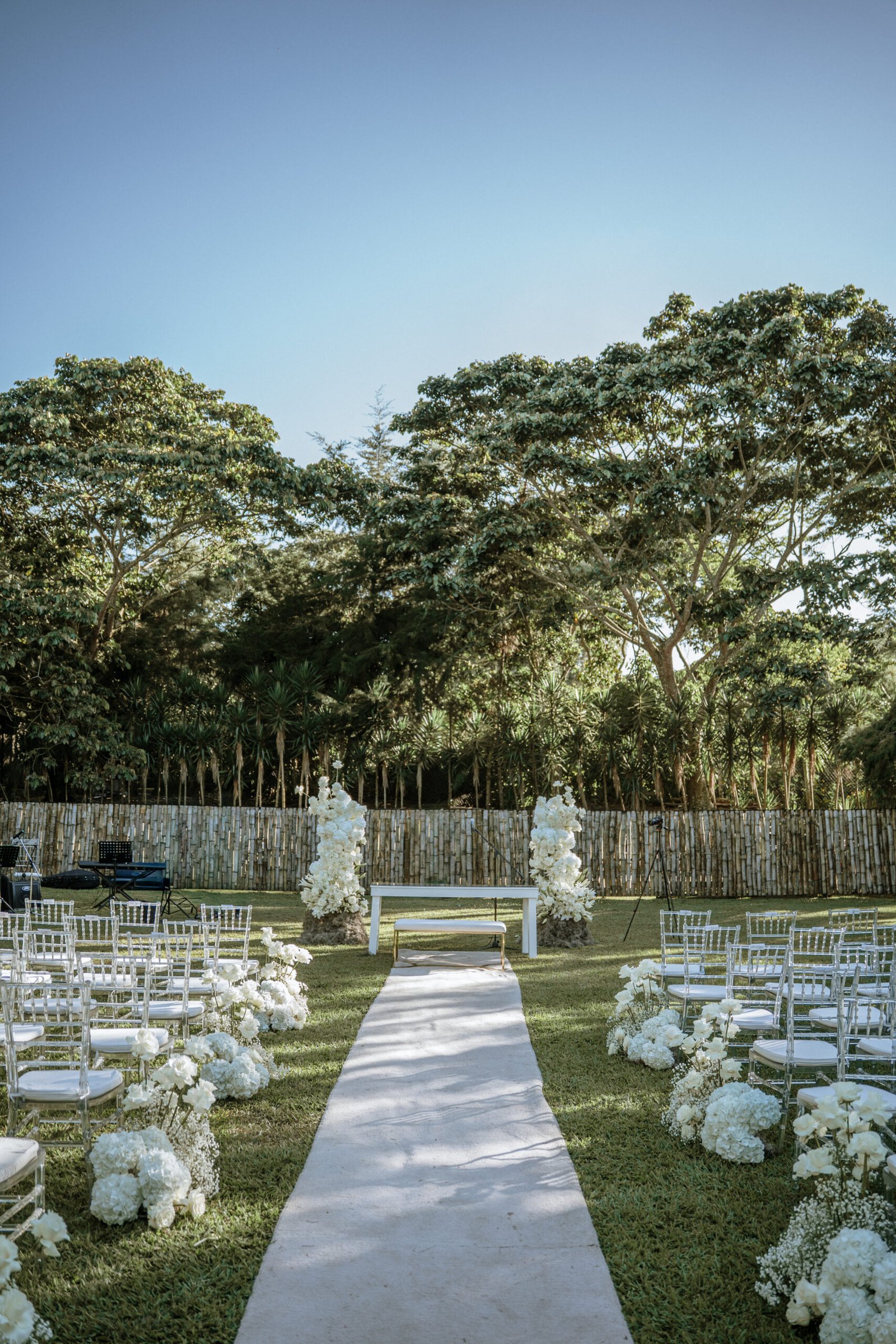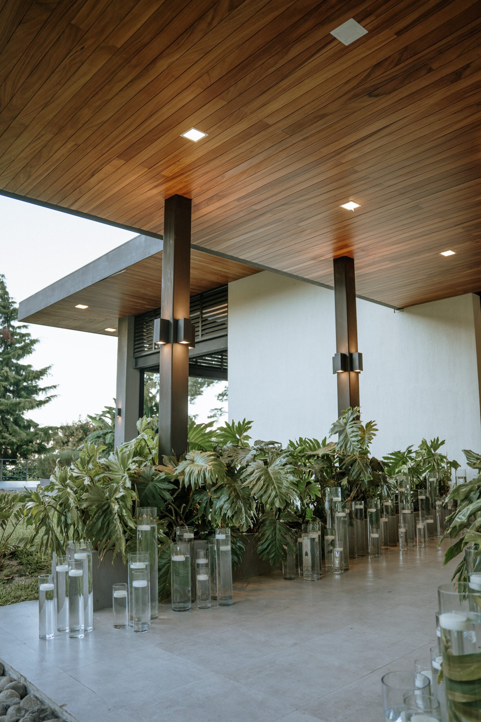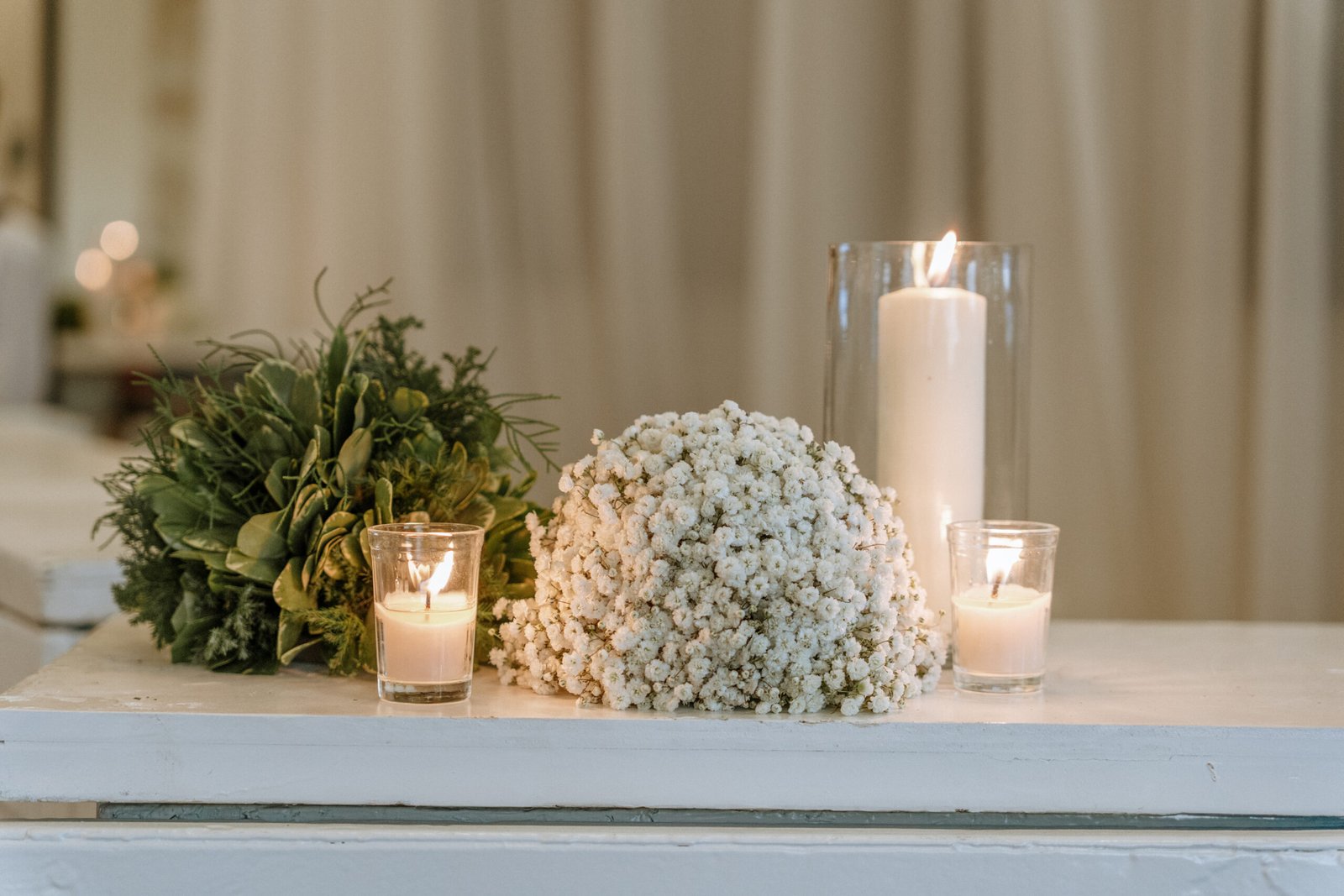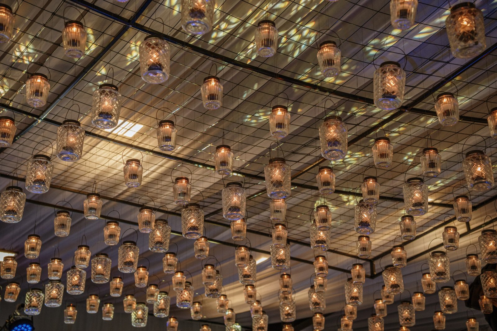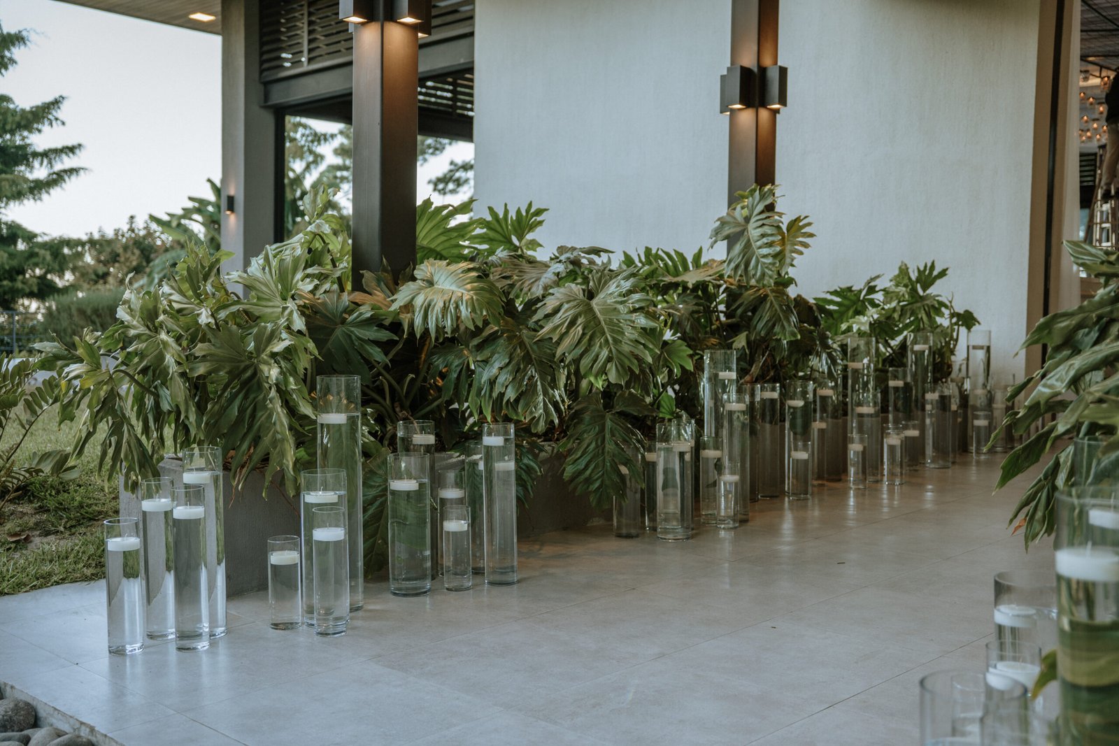 The atmosphere felt intentional but never forced. The floral work was clean, airy, and cohesive, complemented by glass cylinders, transparent chairs, and soft textiles The floating candle ceiling became the anchor point indoors, offering ambient warmth and elevating the entire room.