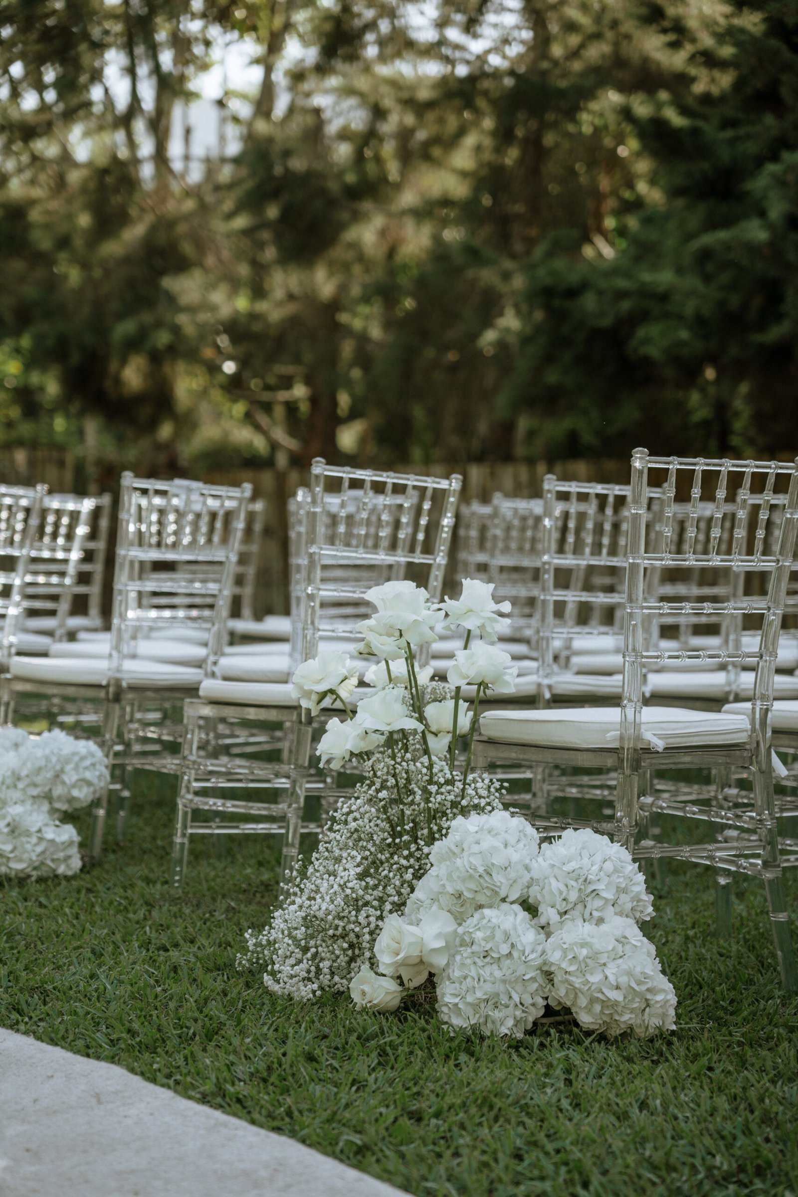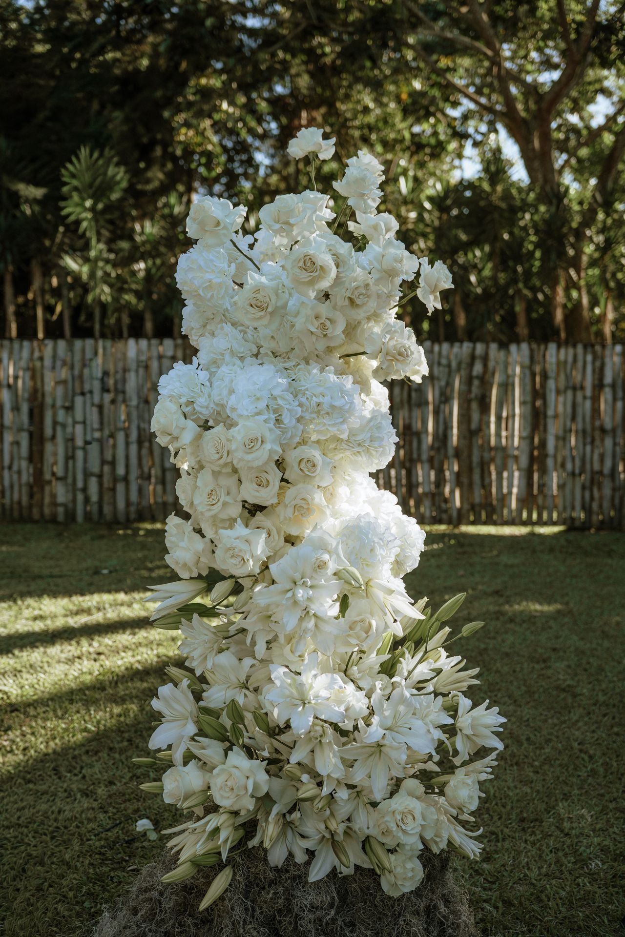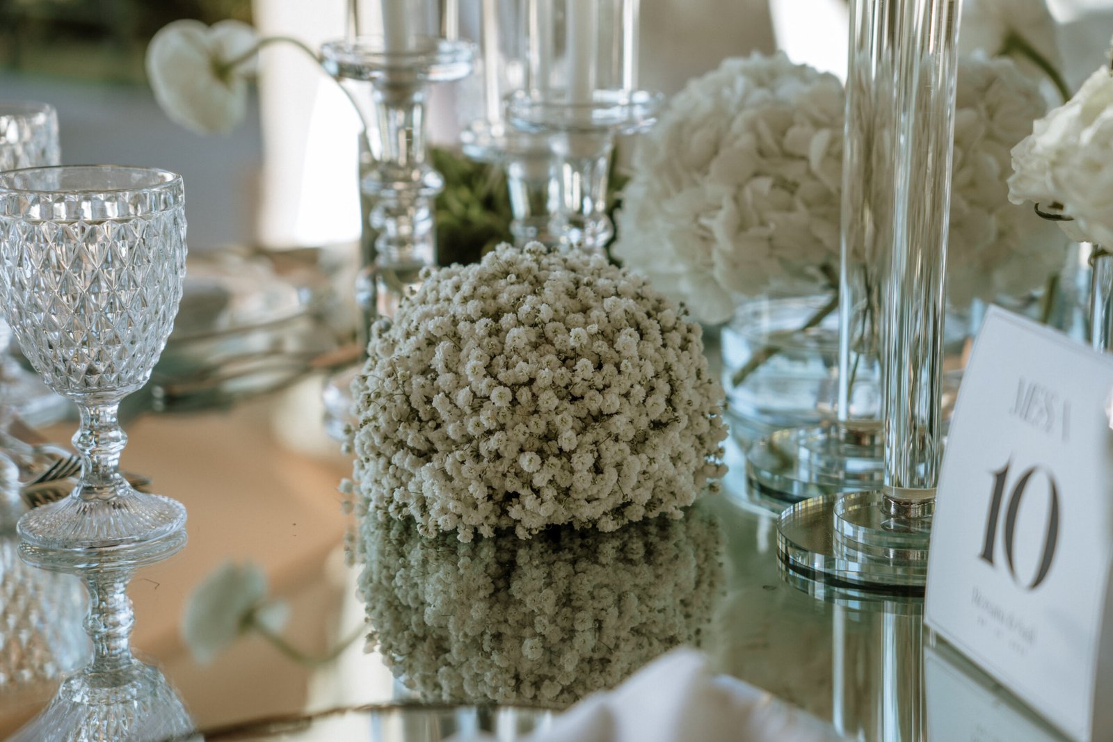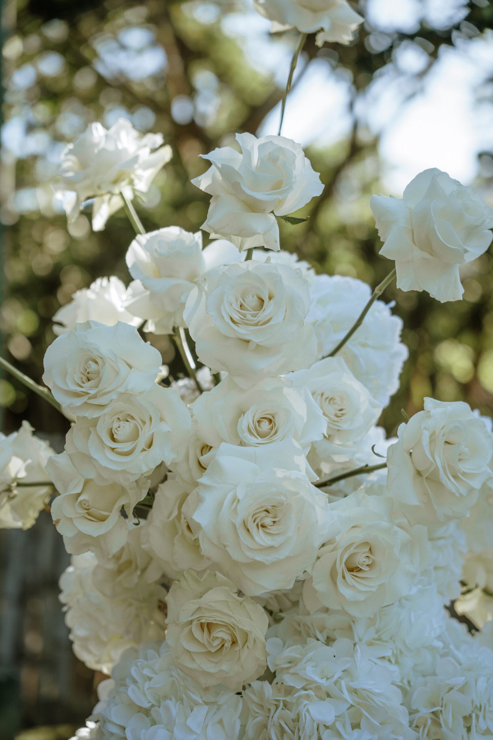 This wedding design focused on the beauty of restraint — sculptural floral compositions, layered in texture, brought a quiet boldness to the space. While the overall palette remained strictly white, each arrangement explored form and rhythm: some pieces played with verticality and structure, while others rested low and lush.